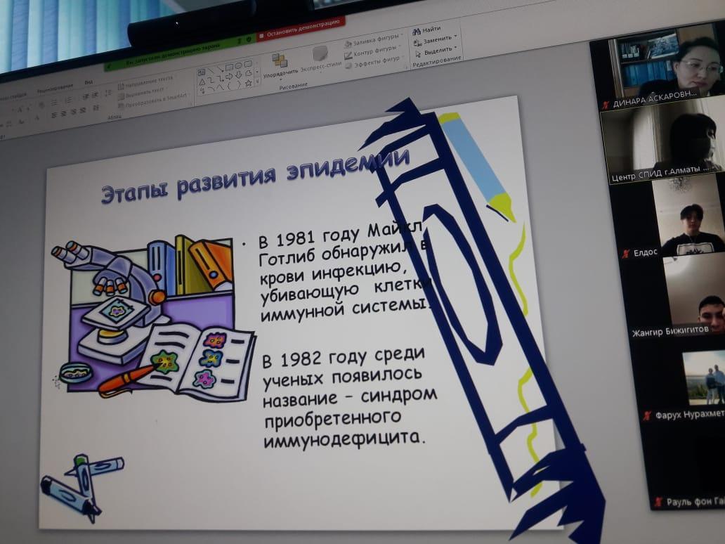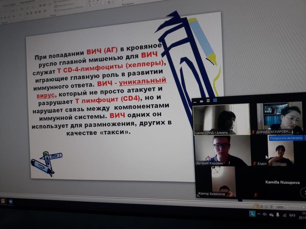 В КГУ «Школа-гимназия №5» состоялась 30-минутная on-line тематическая лекция в присутствии социального врача СПИД центра Бейсеновой А.Р. на тему "ВИЧ-инфекция". Лекция прошла в режиме конференц-связи через сервис ZOOM
