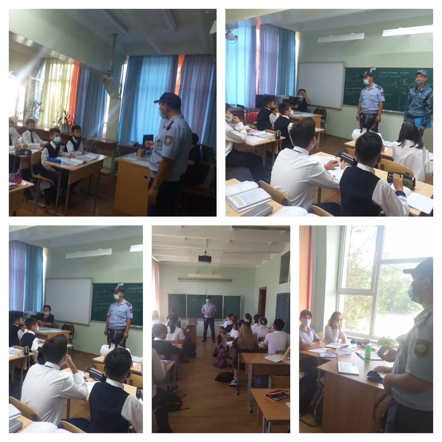 "№5 мектеп-гимназия" КММ 7-9 сынып оқушыларына 13-қыркүйек 2021жылы Әуезов аудандық ІІБ ЖҚП ЮПБ полиция аға лейтенанты Нусупов Б. Б. мен полиция лейтенанты Жандарбек С. А. "Жасөспірім" профилактикалық айлық барысында кәмелетке толмаған жасөспірімдер арасында құқықбұзушылықтың алдын алу мақсатында түсіндіру жұмыстарын жүргізді. Әкімшілік құқықбұзушылық туралы Кодекстің 442 бабы және 434, 441баптары туралы айтып өтті .