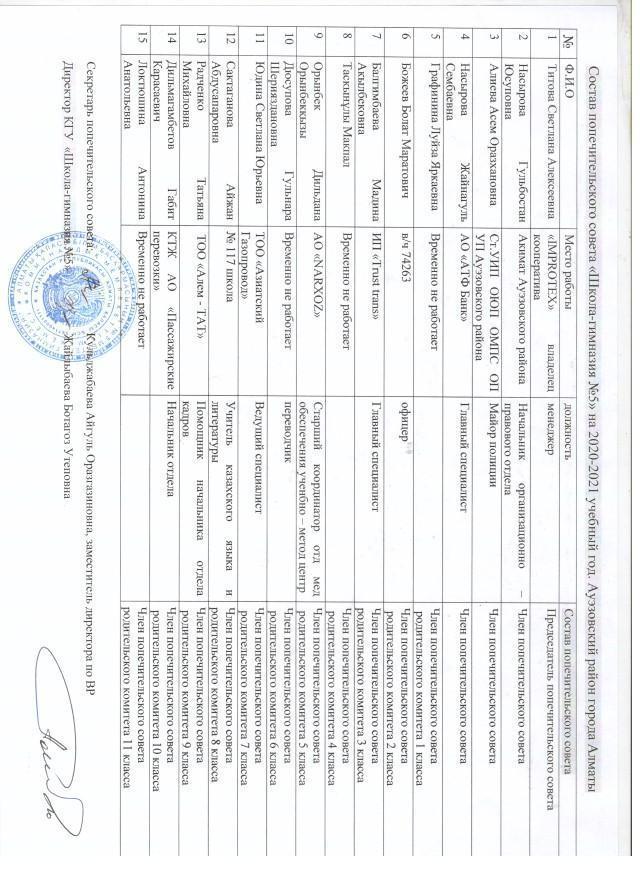 Протокол №1 Заседания Попечительского совета КГУ «Школа - гимназия №5»