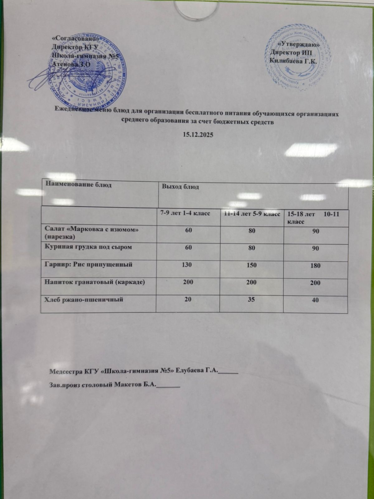 МЕНЮ Меню блюд на 29 декабря 2022 года