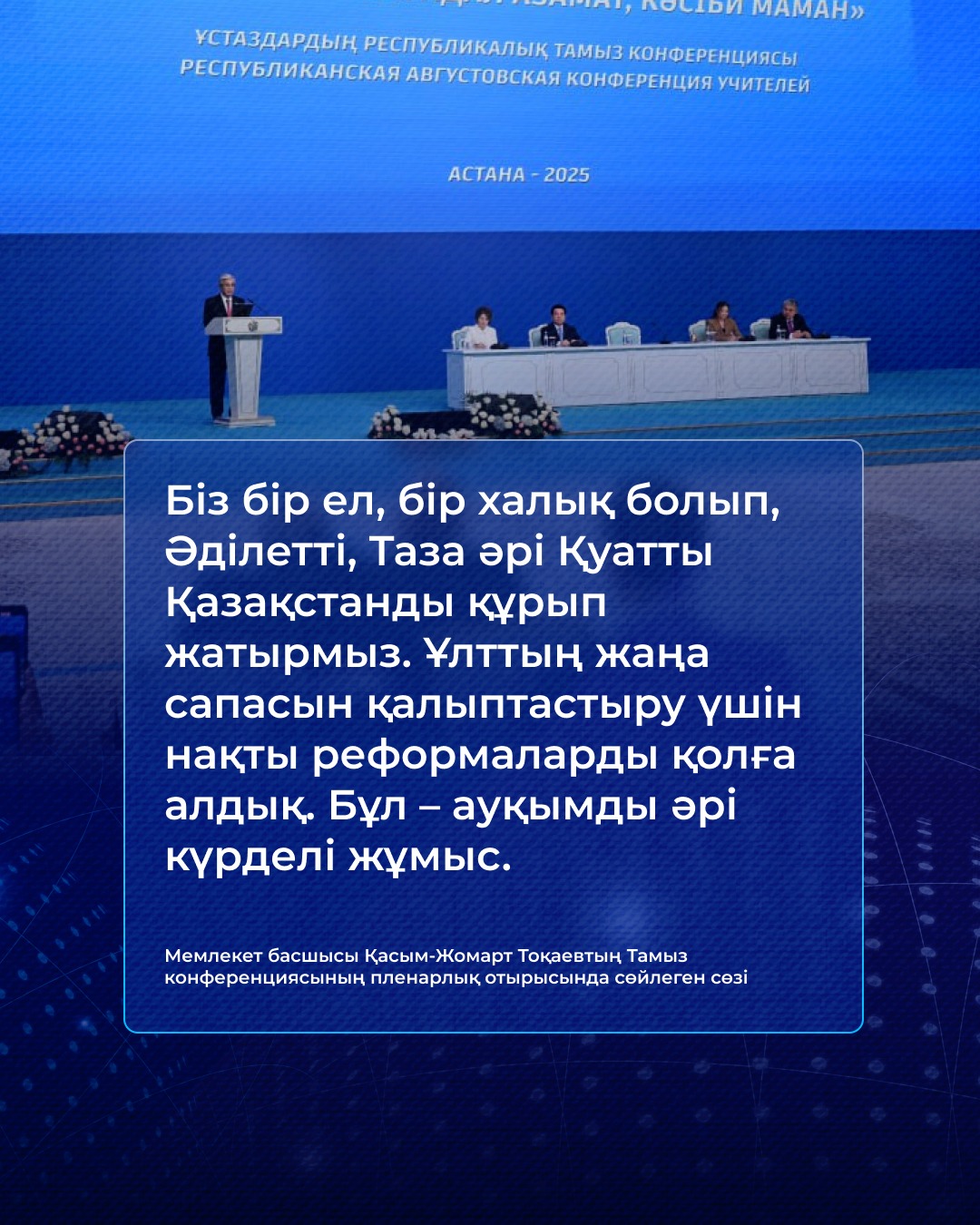 16 август 2025 0 1 2 3 4 5 Мемлекет басшысы Қасым- Жомарт Тоқаевтың Тамыз конференциясының пленарлық отырысында сөйлеген сөзі.