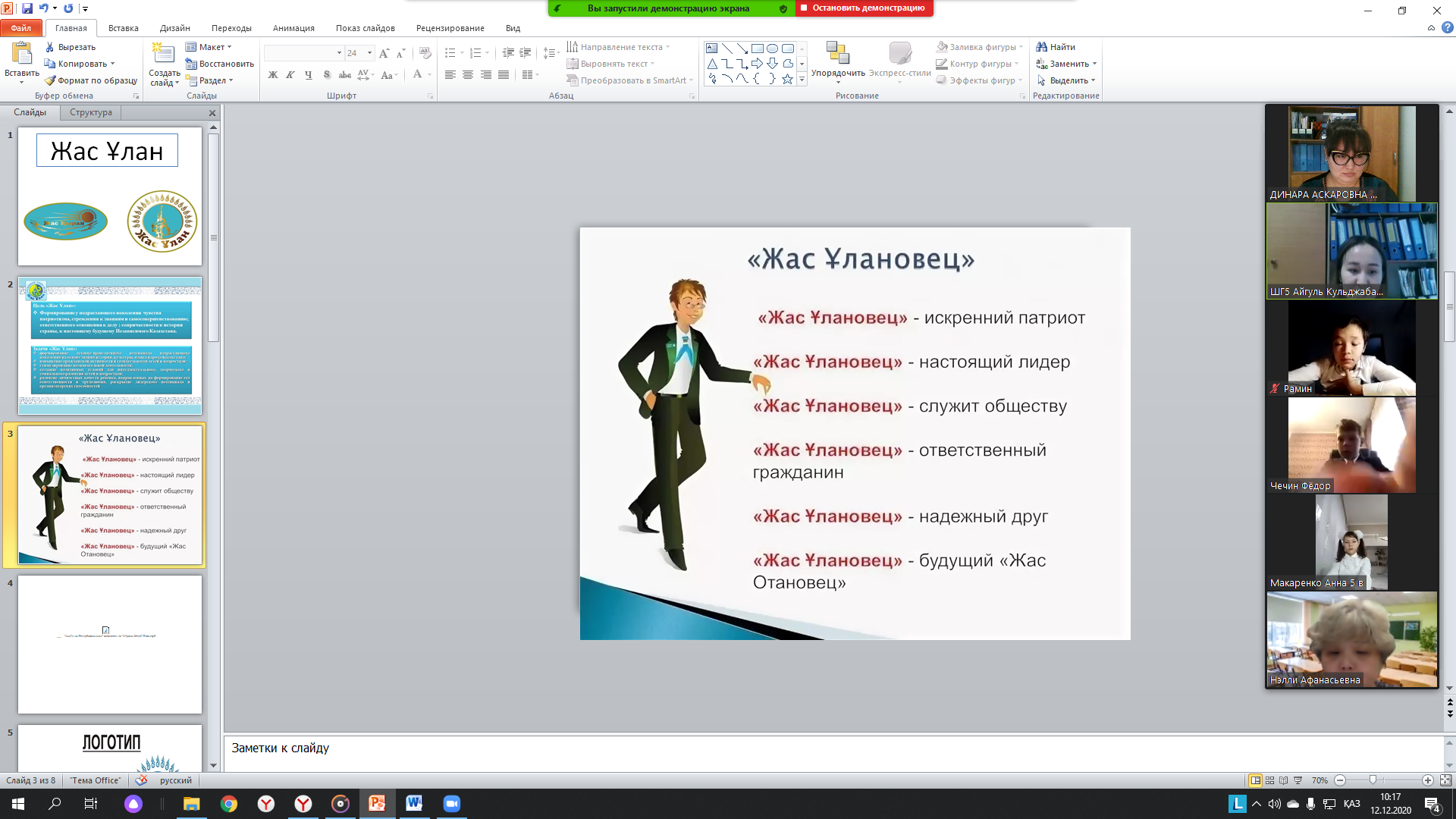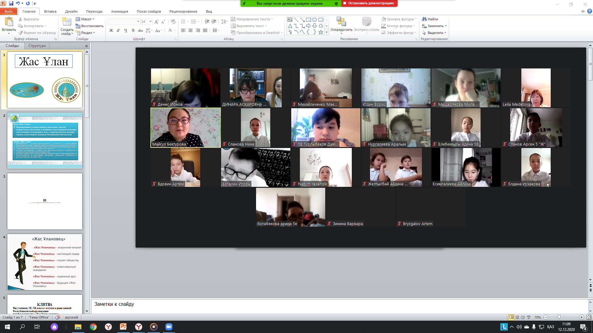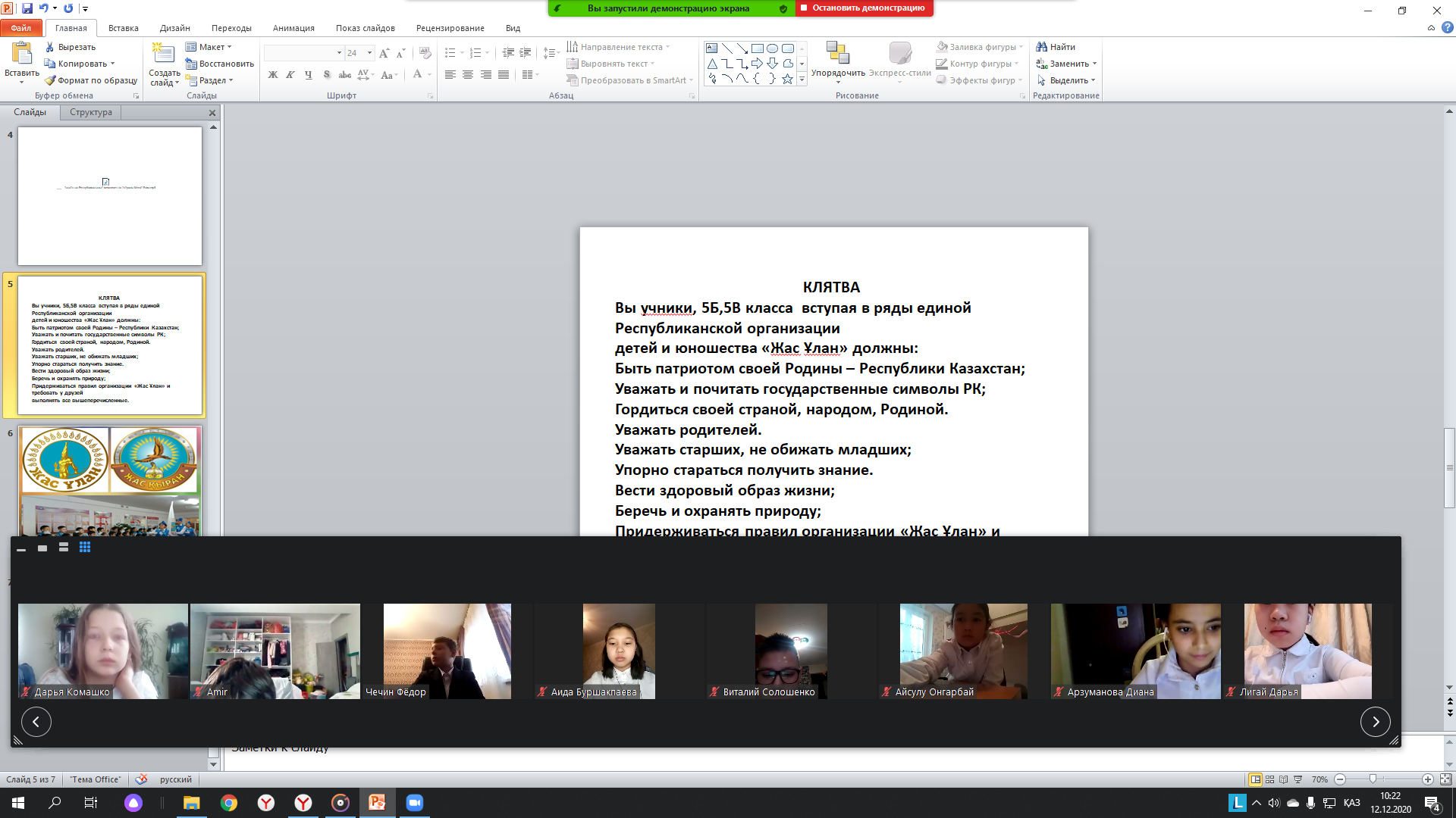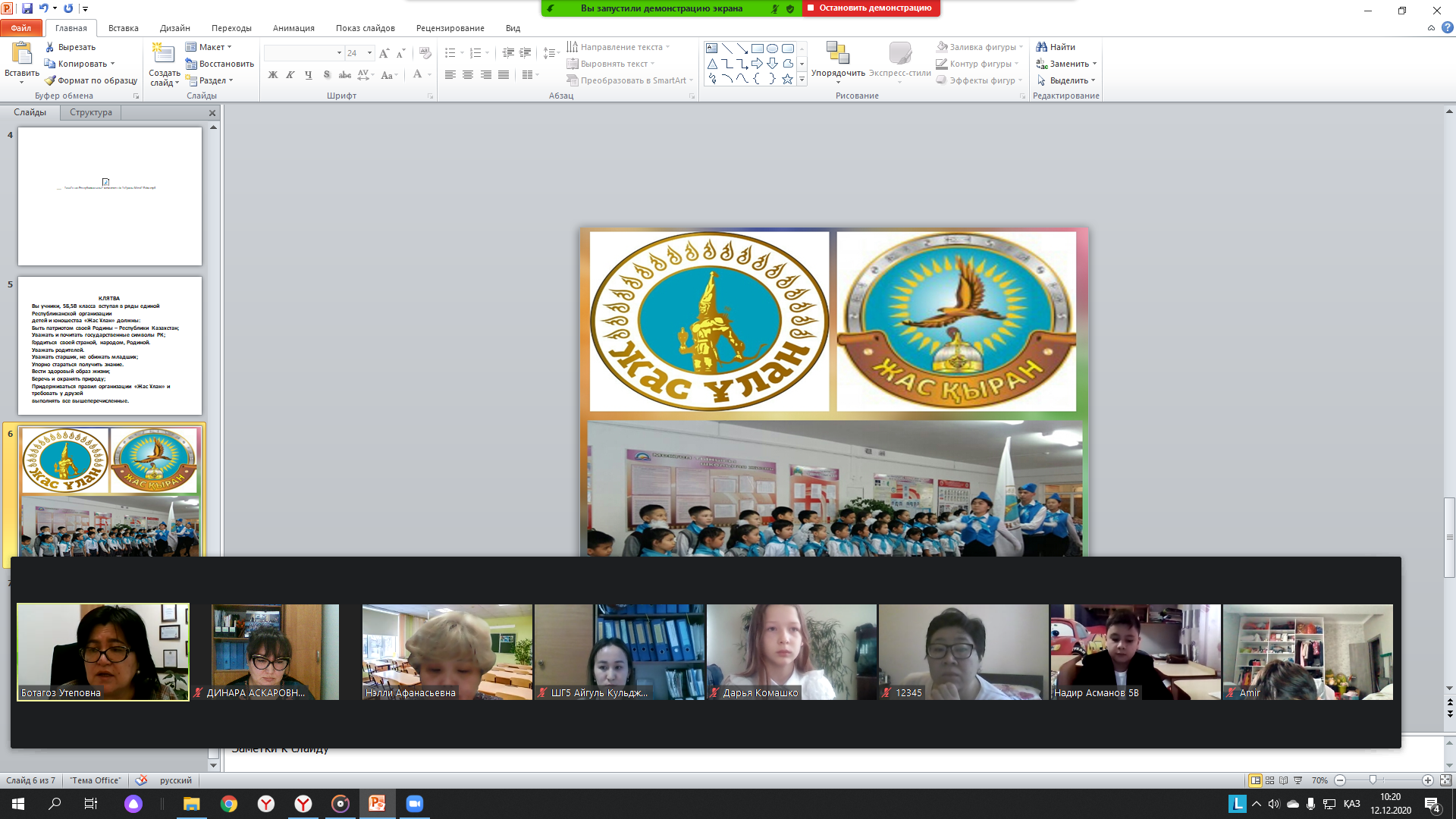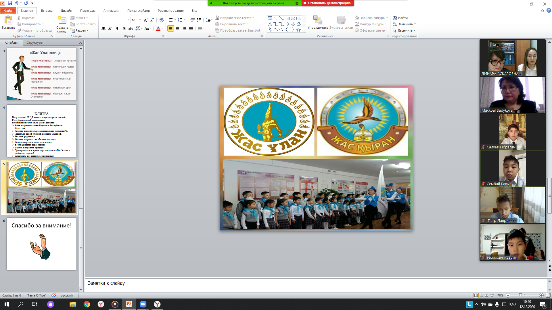 В преддверии празднования Дня Независимости Республики Казахстан 12.12.2020г в КГУ ШГ№ 5 прошло торжественное принятие учащихся 5-х классов в ряды РДЮО «Жас Ұлан», с целью воспитания чувства патриотизма у подрастающего поколения, развития лидерских качеств, интеллектуального и творческого потенциала. Учащиеся ознакомились с правилами, уставом, атрибутикой организации, дали клятву и стали полноправными членами РДЮО «Жас Ұлан».