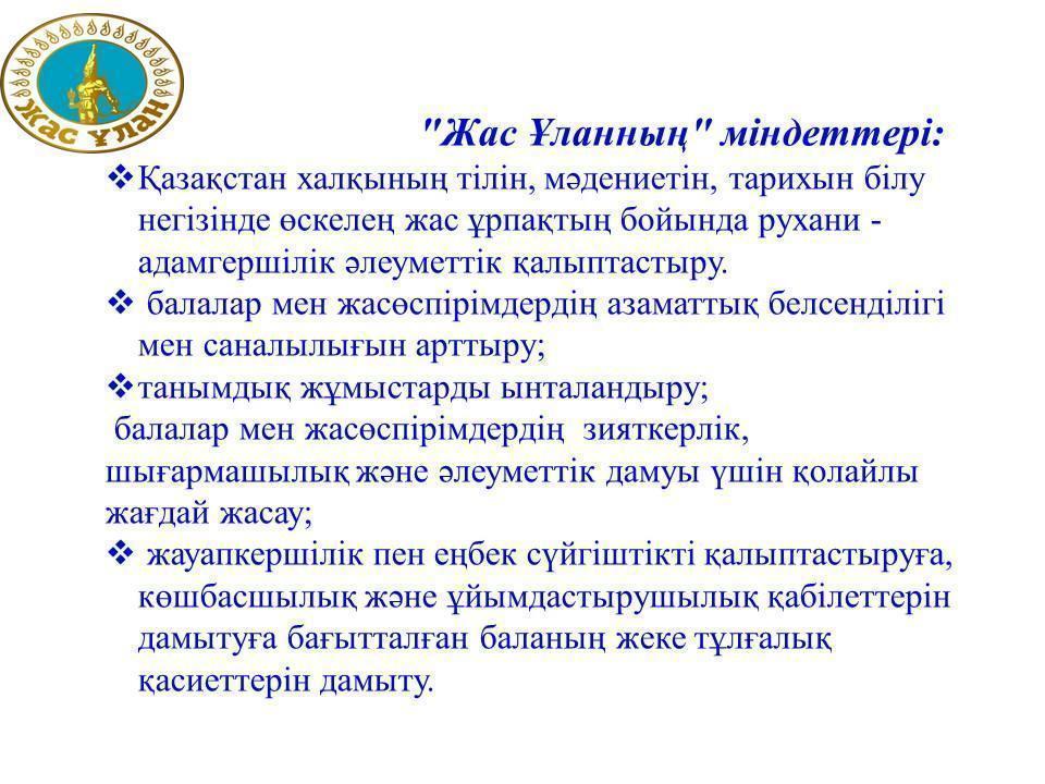 "ЖасҰлан" балалар мен жасөспірімдер ұйымына алғаш рет мүшелікке қабылданған оқушыларды құттықтай отырып, оқуда алда болып, биік белестерді бағындырады деп тілек білдіреміз.