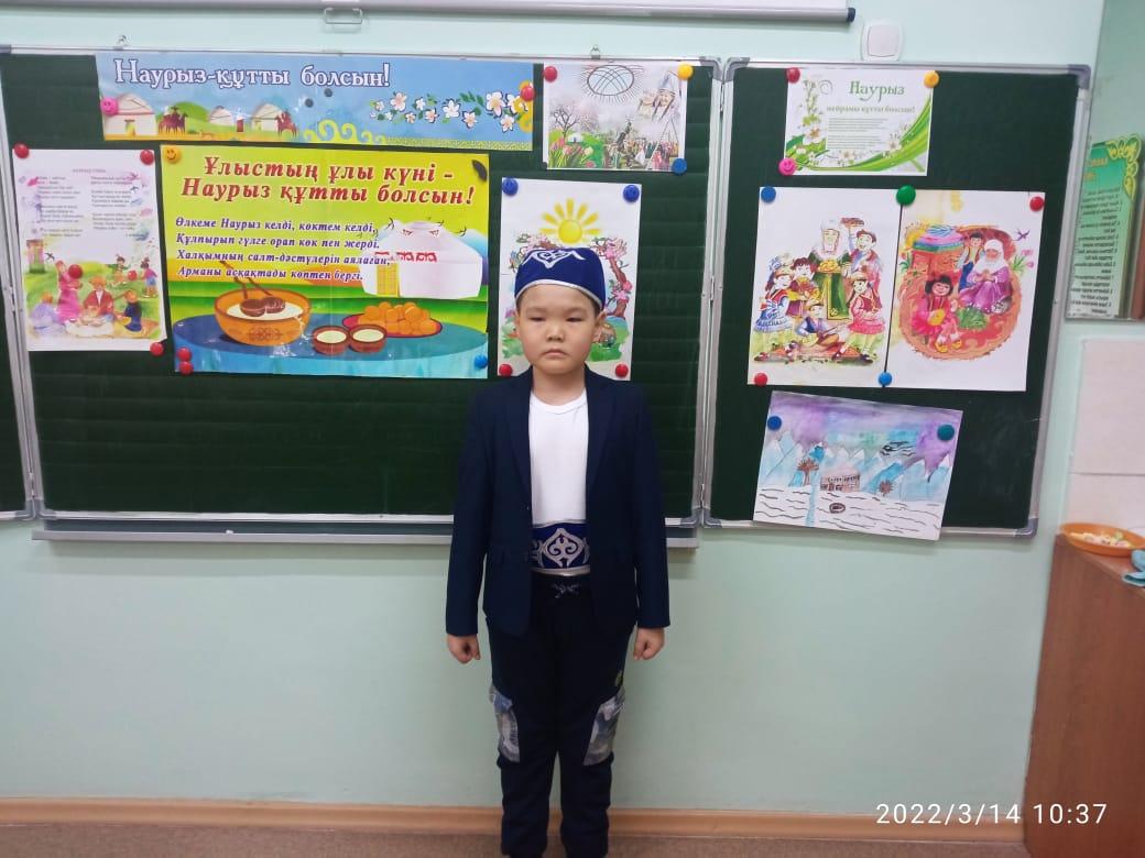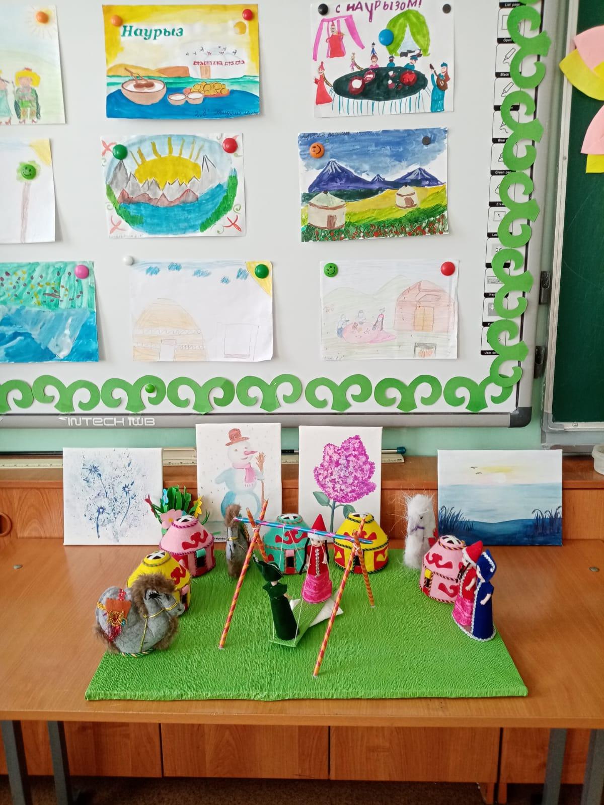 14.03.2022 г. в КГУ «Школа-гимназия №5» учащиеся 1-4 классов подготовили выставку к празднику Наурыз и пришли в национальной одежде.
