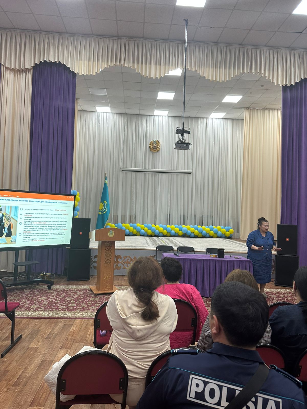 11 класс - важный этап жизни старшеклассников. Это последний год обучения в школе. За это время ученики готовятся к выпускным и вступительным экзаменам; осознают себя как личность, понимают сущность своего «Я», чтобы в дальнейшем успешно реализовать свои способности и возможности; осуществить осознанный выбор профессии, сочетая «хочу» - «могу» - «надо». Поэтому важно осуществлять тесное взаимодействие семьи и школы. Зауреш Оразовна акцентировала внимание родителей усилить контроль над посещаемостью учениками уроков, консультационных занятий, контролировать подготовку к ИА и ЕНТ, а также режимом дня выпускников.