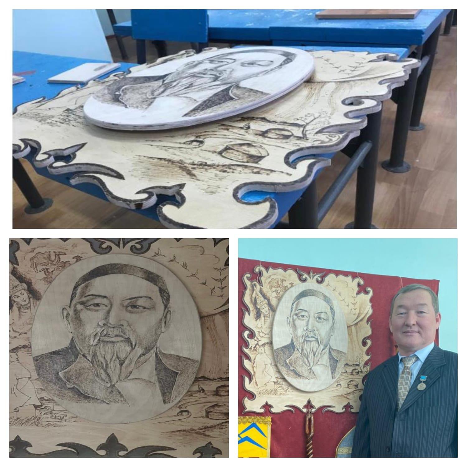10 август 2021 0 1 2 3 4 5 Ко Дню рождения Абая Кунанбаева учитель технологии Сырттанбеков Б. К. изготовил панно «Абай и его произведения» в технике пирографии. Ко Дню рождения Абая Кунанбаева учитель технологии Сырттанбеков Б. К. изготовил панно «Абай и его произведения» в технике пирографии.