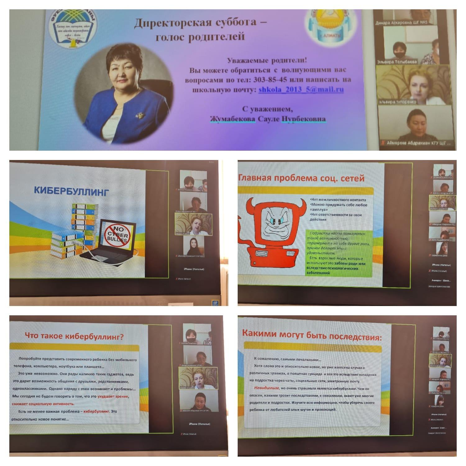В целях реализации концепции Президента Республики Казахстан Касым-Жомарта Токаева «Слышащее государство» Управлением образования г.Алматы принято решение о проведении каждой организацией образования онлайн-встреч «Директорская суббота – голос родителей».
