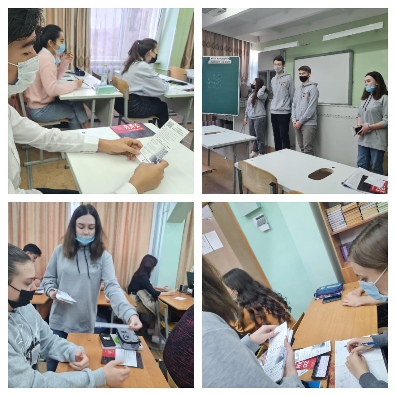 В целях повышения уровня осведомленности учеников 11-х классов КГУ «Школа-гимназия №5», об образовательных программах Казахстанско - Немецкого Университета и создания условия для осознанного профессионального самоопределения и выбора будущей профессии Казахстанско –Немецкого Университет 26 октября 2021года провели профориентационную работу и раздали флаеры учащимся с информацией о КНУ