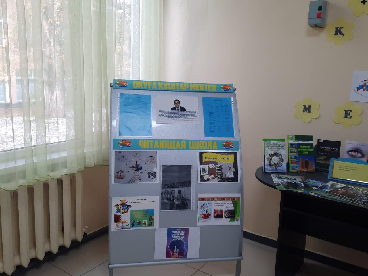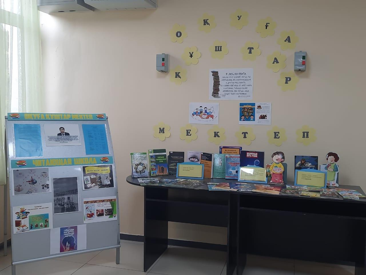 Уголок "Читающая школа", "Оқұға құштар мектеп".