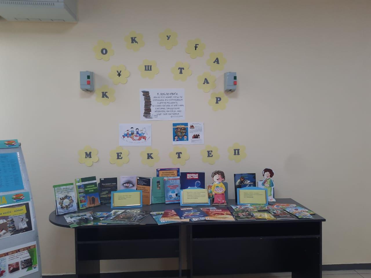 В "Школе - гимназии #5" в фойе школы библиоткари организовали уголок "Читающая школа", "Оқұға құштар мектеп". Целью которого является повышение интереса учащихся к чтению. Чтение способствует расширению кругозора, знание о мире, развивает критическое мышление, помогает усвоить образцы поведения, которые воплощаются в героях произведений, в целом, воспитывает и окультуривает человека. И все это нужно закладывать в детстве. Именно тогда любовь к литературе будет присутствовать на протяжении всей жизни человека, также чтение является важнейшим фактором развития образования, воспитания и повышения культуры наших детей.