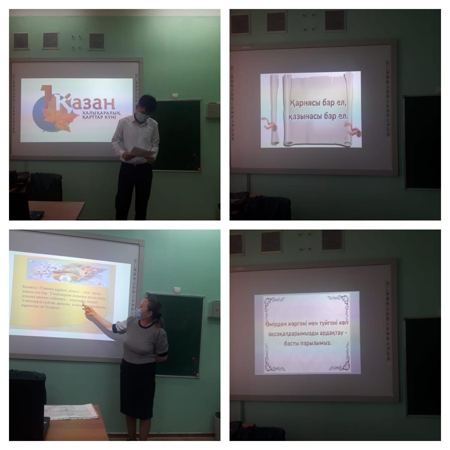 05 октября 2021г. в КГУ «Школа-гимназия №5» был проведен классный час ко Дню Пожилого Человека . Цель: привлечение внимания к проблемам людей пожилого возраста, повышение степени информированности о проблеме демографического старения общества, индивидуальных и социальных потребностях пожилых людей, их вкладе в развитие общества, необходимости изменения отношения к пожилым людям.