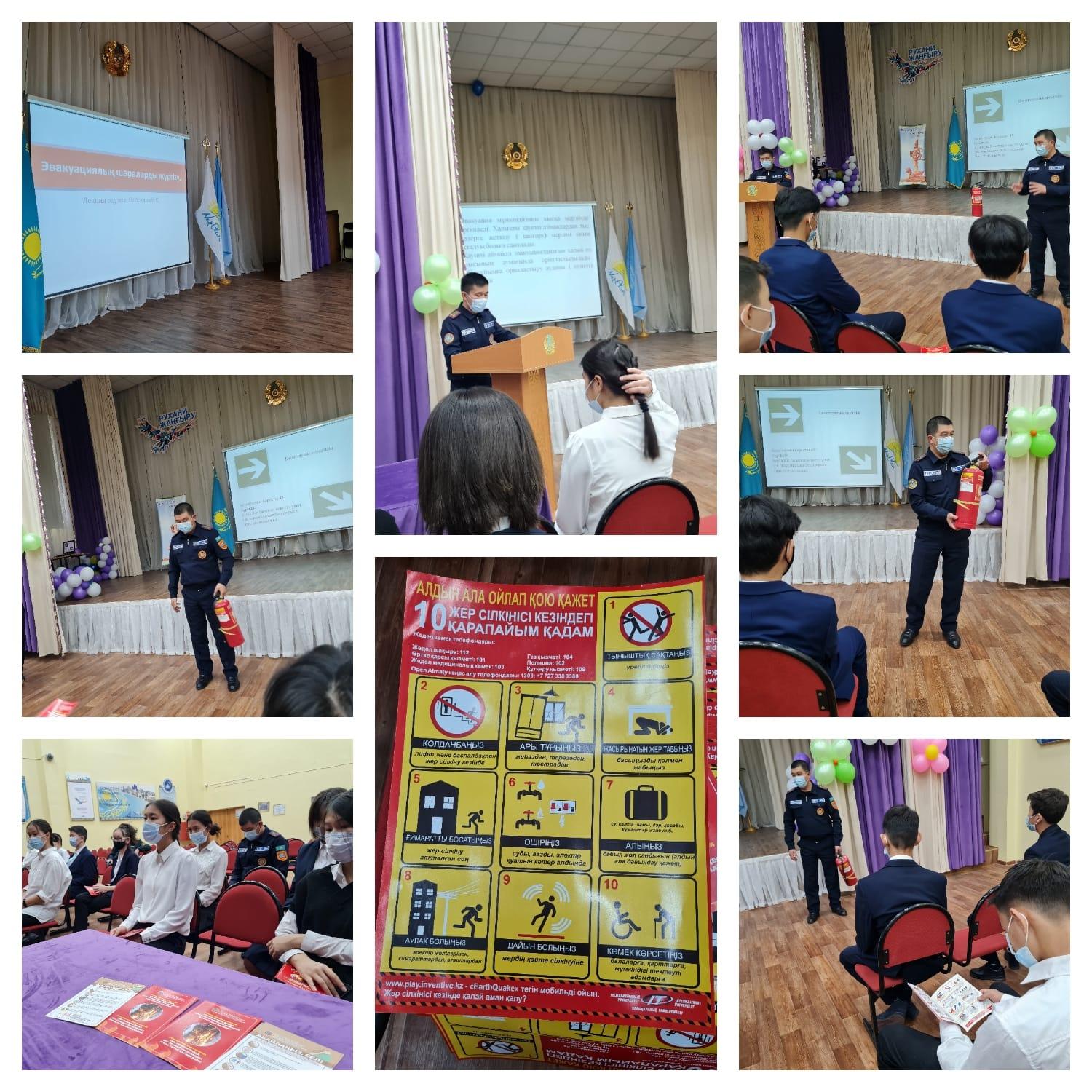 Әуезов ауданы Төтенше жағдайлар басқармасының қызметкерлері лейтенант- Байгелов И.С. , капитан -Ильясов А.Е. мектеп әкімшілігімен бірлесіп ағымдағы жылдың 12-ші қазан күні, «№5 мектеп-гимназиясы» КММ 9- сынып оқушыларына «Төтенше жағдай кезінде эвакуация шаралары» тақырыбында дәріс өткізді