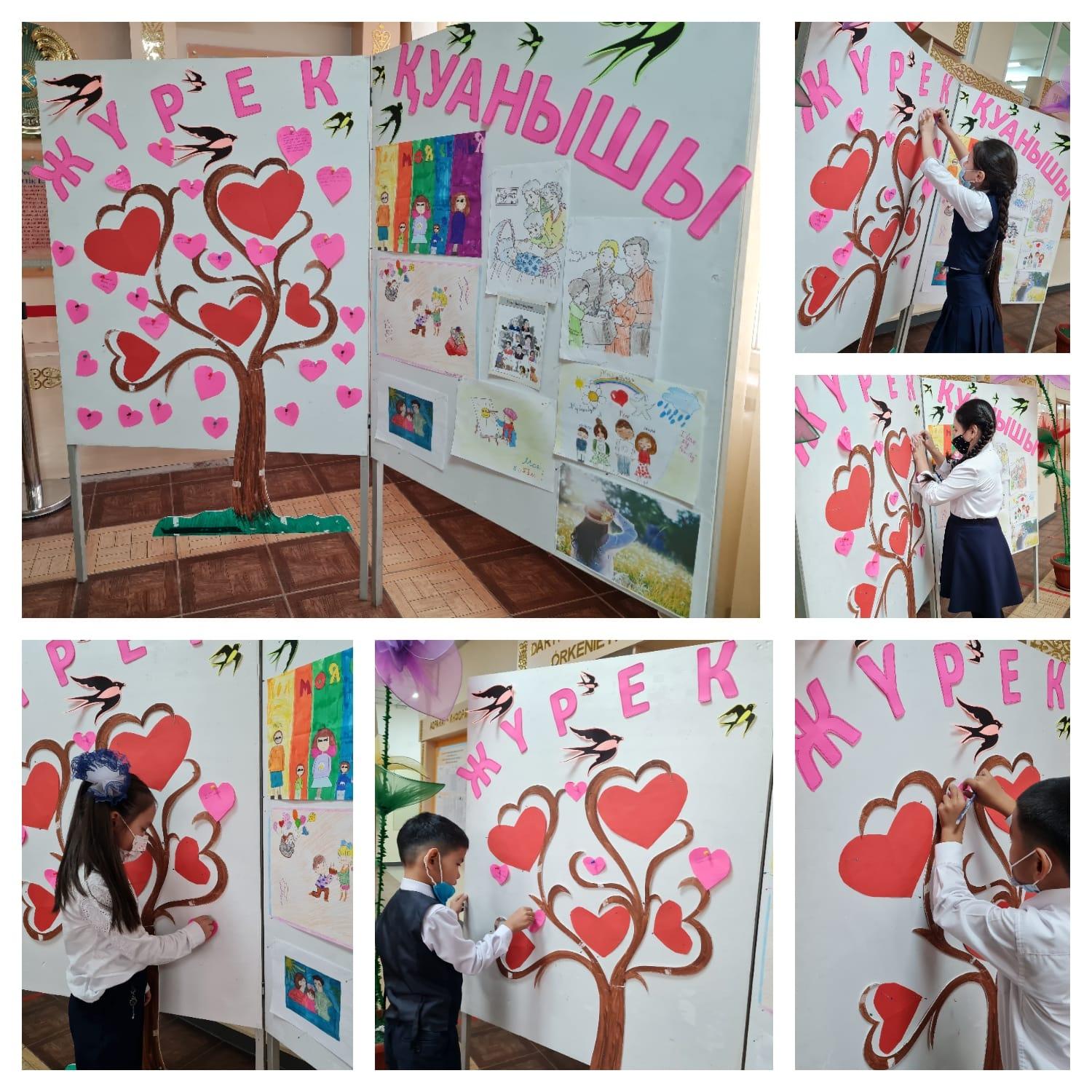 Қазақстан Республикасы Білім және ғылым министрлігінің хатына сәйкес Жалпыадамзаттық Құндылықтар Күнін аясында «№5 мектеп-гимназия » КММ 1-5 сынып оқушыларымен - «Жүрек қуанышы» атты оқушылардың шығармашылық жұмыстарының көрмесі ұйымдастырылды.