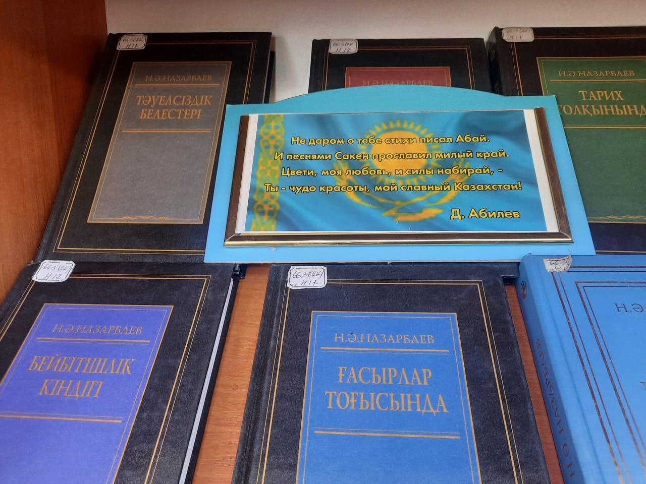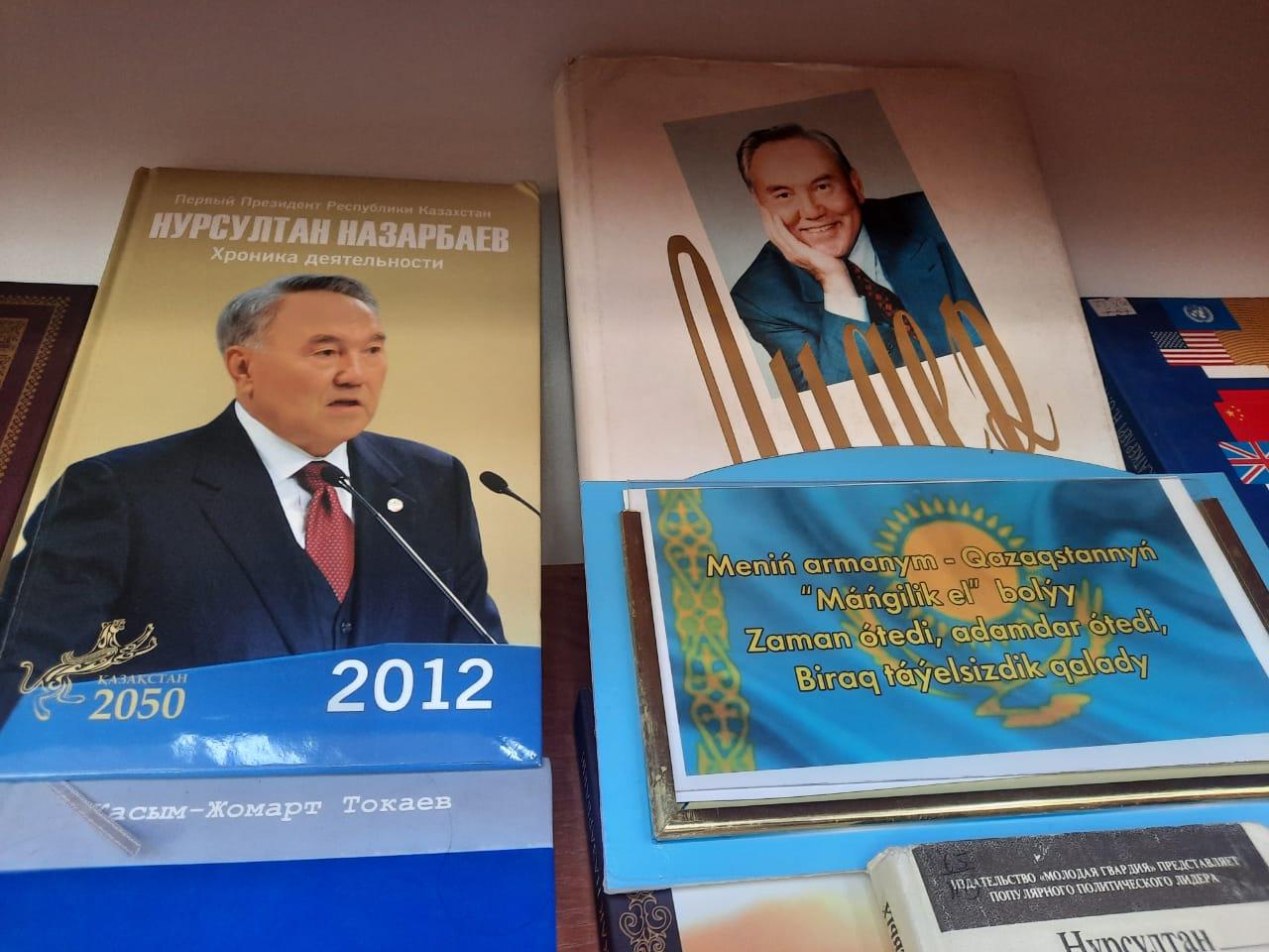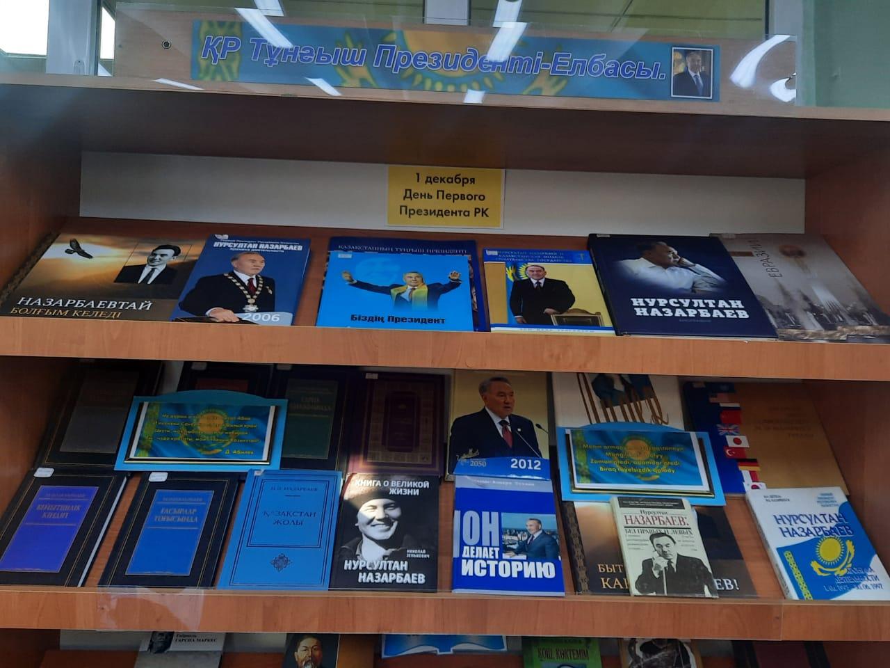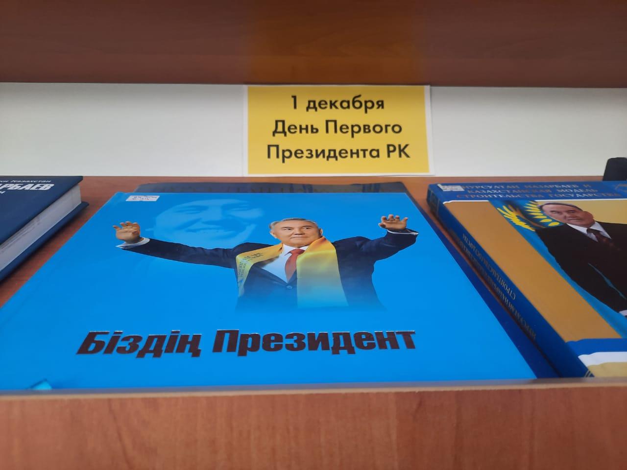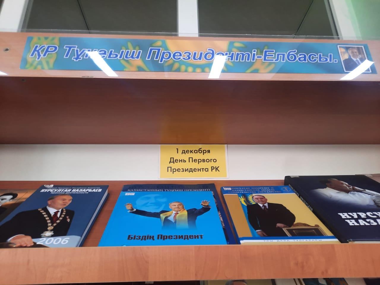 Первый президент Республики Казахстан Нурсултан Абишевич Назарбаев является основателем независимого государства, обеспечившим единство Казахстана, защиту Конститутции, прав и свобод человека и гражданина. Сенат парламента Казахстана принял в законопроект "О праздниках РК к уже существующим праздникам День Первого Президента Казахстана, который будут отмечать 1декаьря". В связи с этим праздником в "Школе - гимназии #5" в библиотеке организована выставка "ҚР Тұнғыш Президенті Елбасы".