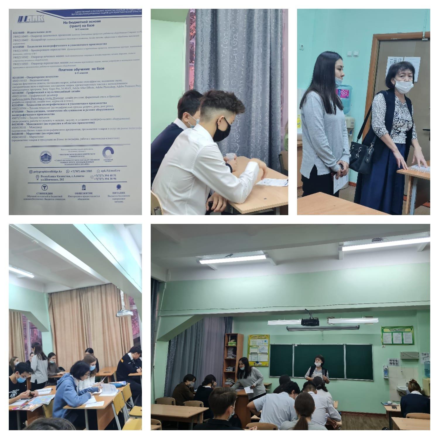 Профориентация с учащимися 9,11-х классов совместно с представителями Алматинского колледжа полиграфии.