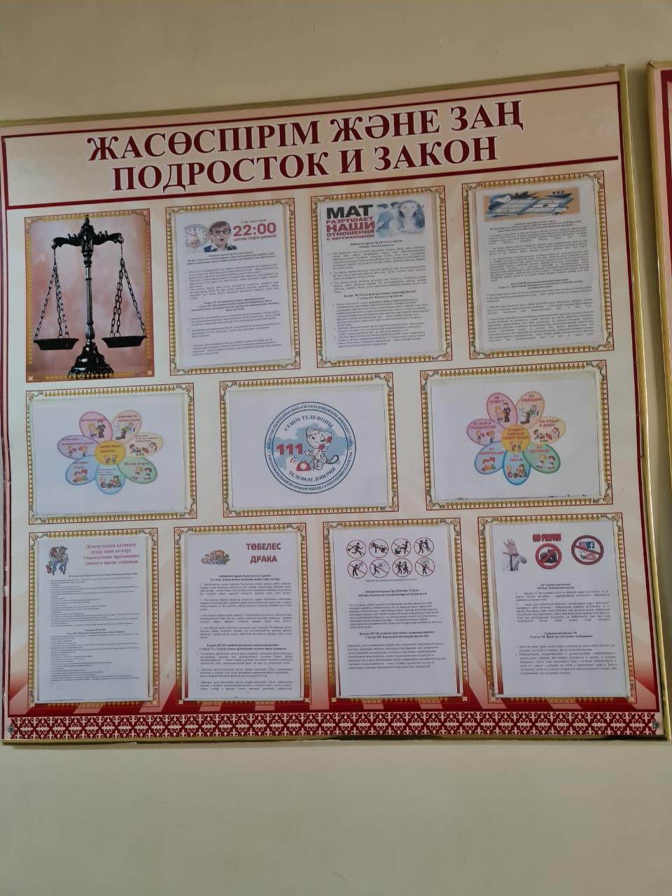 Ағымдағы жылдың 8-20 қараша аралығында біздің еліміз "Қатыгездік пен зорлық-зомбылықсыз балалық шақ" республикалық ақпараттық науқанын өткізеді. Бұл науқанға Әуезов ауданының барлық білім беру ұйымдары белсенді қатысады. Біздің №5 мектеп - гимназия да шетте қалмады. Осы науқан аясында мектеп психологы және директордың ТІЖ жөніндегі орынбасары мектеп рекреациясында «ЖАСӨСПІРІМ ЖӘНЕ ЗАҢ» атты бала құқықтары жөніндегі стендті ресімдеді. Стендтік ақпарат әр баланың өмірі мен толыққанды дамуы үшін қажет барлық жағдайларды көрсетеді.