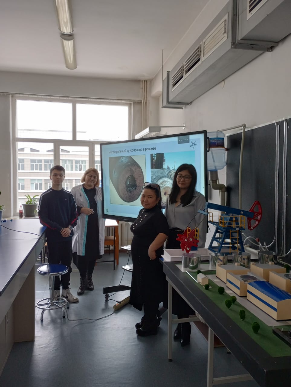 Преподаватели кафедры физической химии, катализа и нефтехимии - Супиева Ж.А., Канапиева Ф.М. и Ажигулова Р.Н. ознакомили школьников с университетом и химико-технологическим факультетом, рассказали о достижениях в мировом рейтинге вузов, образовательных программах, о возможности стажировок в ведущих научно-исследовательских институтах и о других преимуществах обучения на факультете химии и химической технологии.