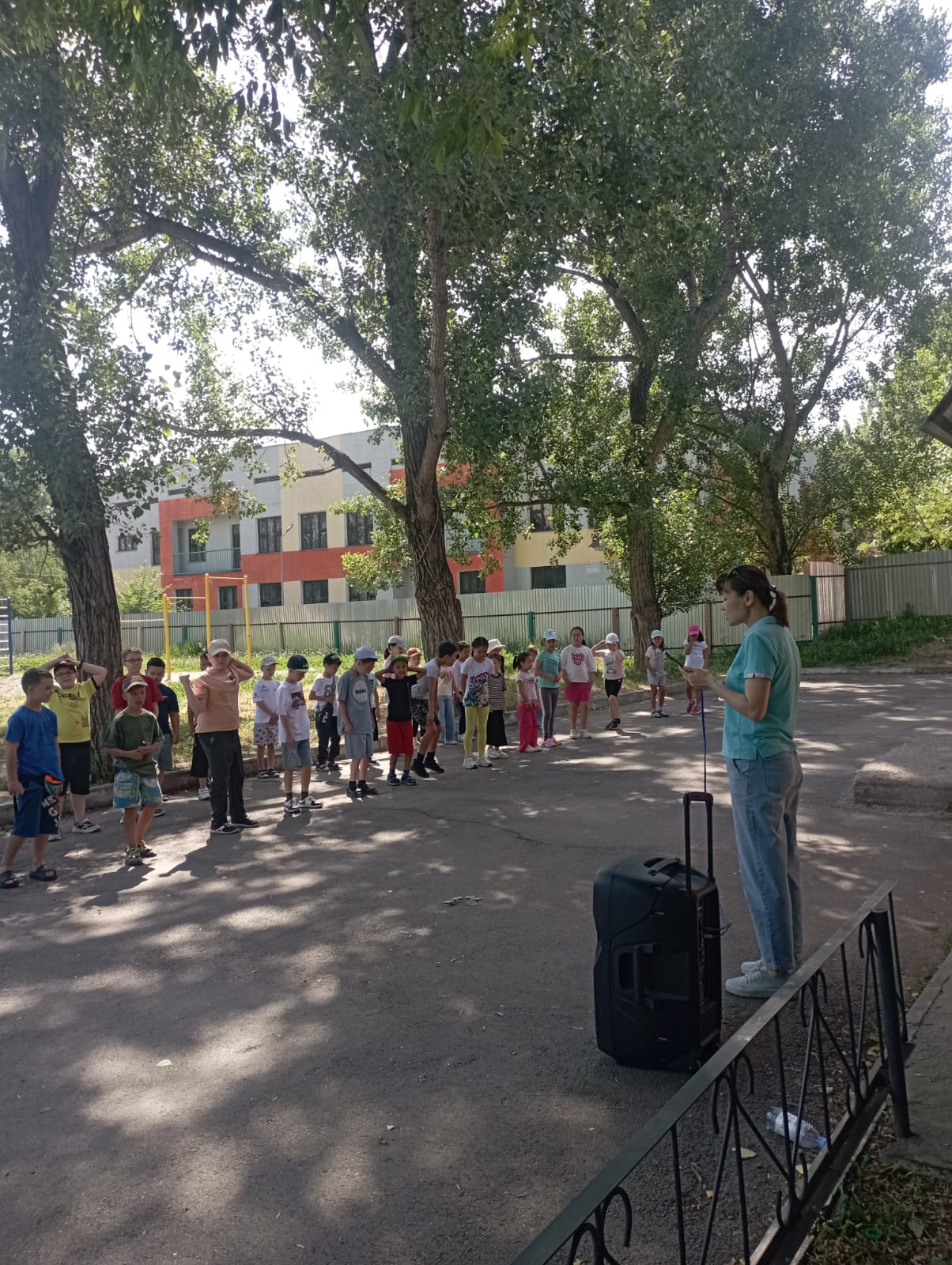 «Солнышко» мектеп жанындағы лагерінің жұмыс жоспарына сәйкес 06.06.2023 жылы музыка пәнінің мұғалімі А.А.Байжаркынова балалармен «Музыкалық уақыт» шарасын ұйымдастырды, сонымен қатар балалар АДК сауда орталығындағы ойын орталығына барды.
