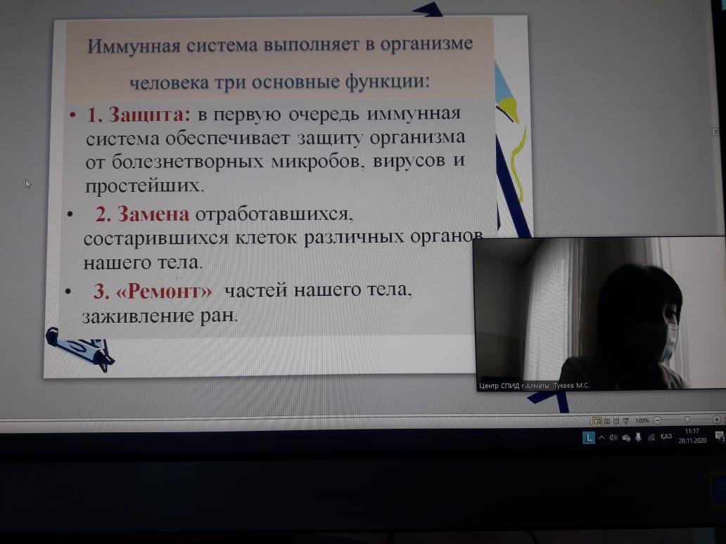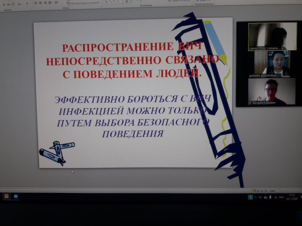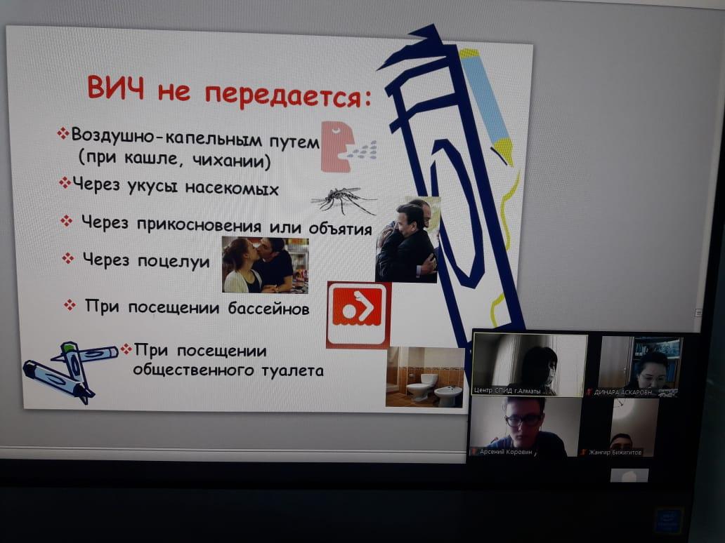 В КГУ «Школа-гимназия №5» состоялась 30-минутная on-line тематическая лекция в присутствии социального врача СПИД центра Бейсеновой А.Р. на тему "ВИЧ-инфекция". Лекция прошла в режиме конференц-связи через сервис ZOOM