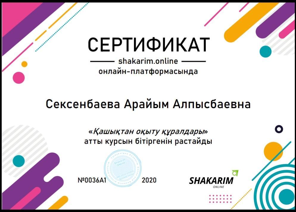 СЕРТИФИКАТ. Сексенбаева Арайлым