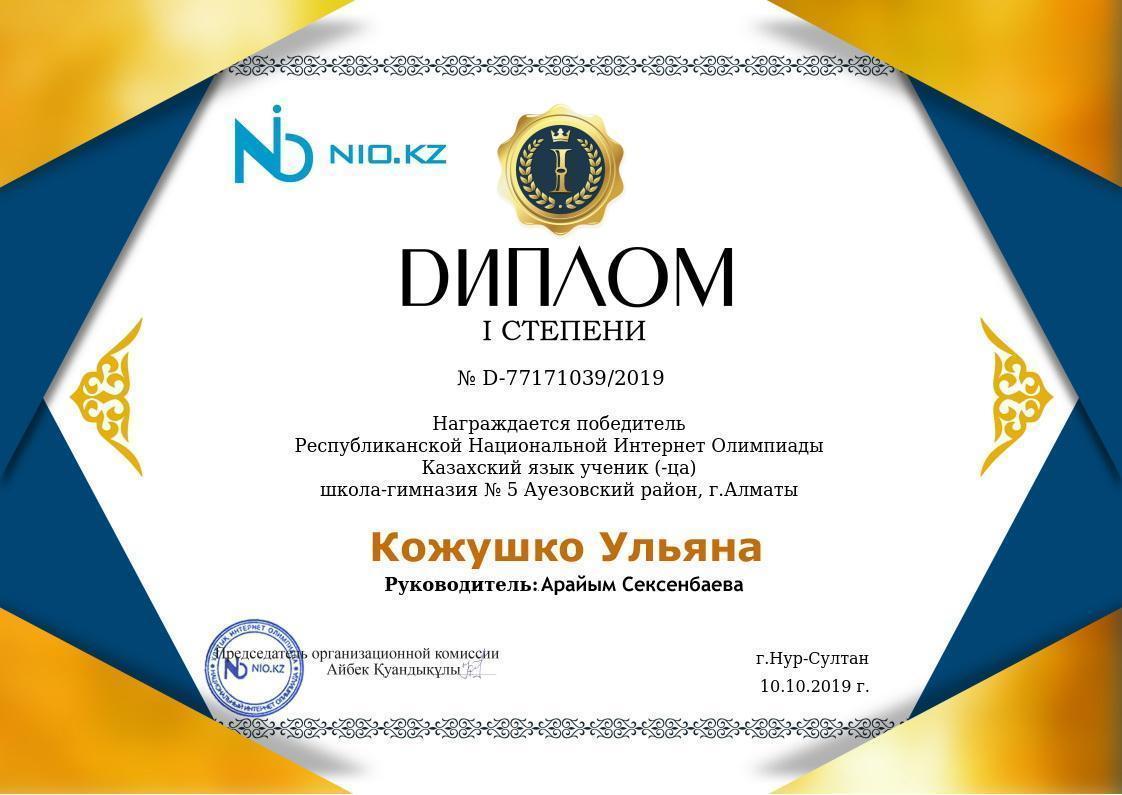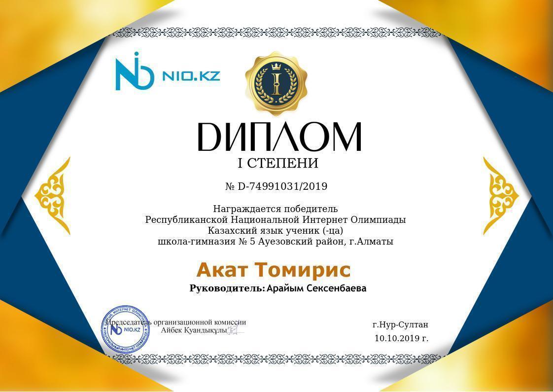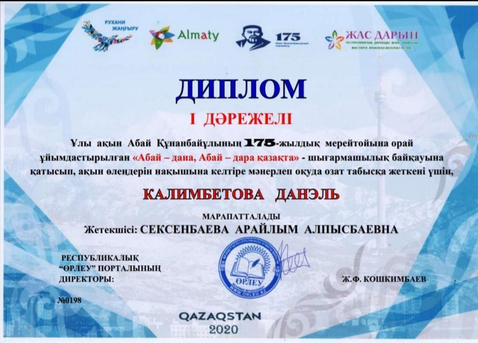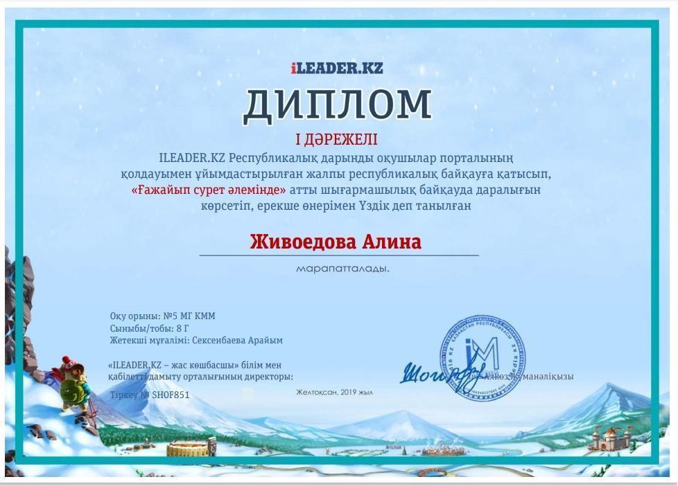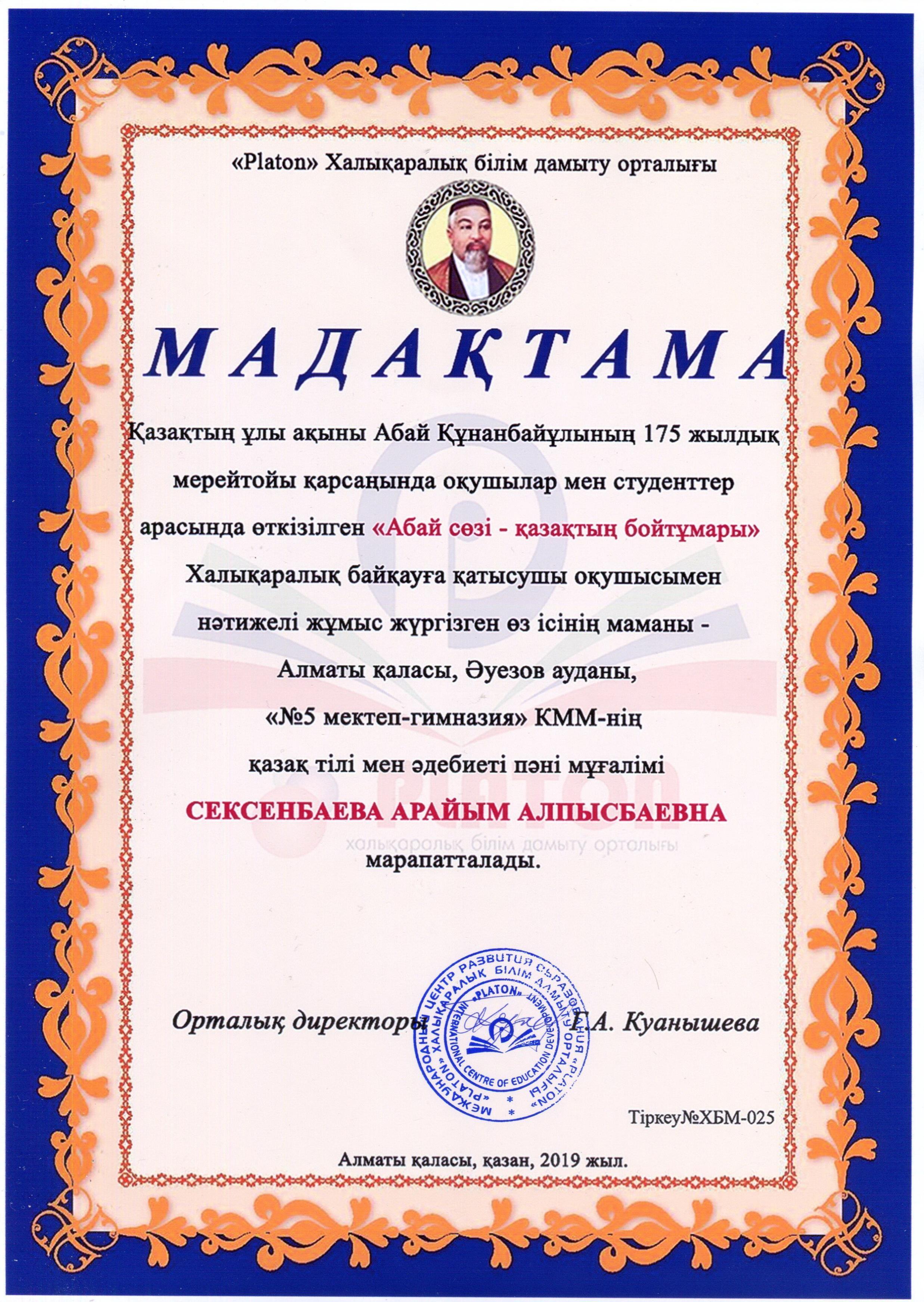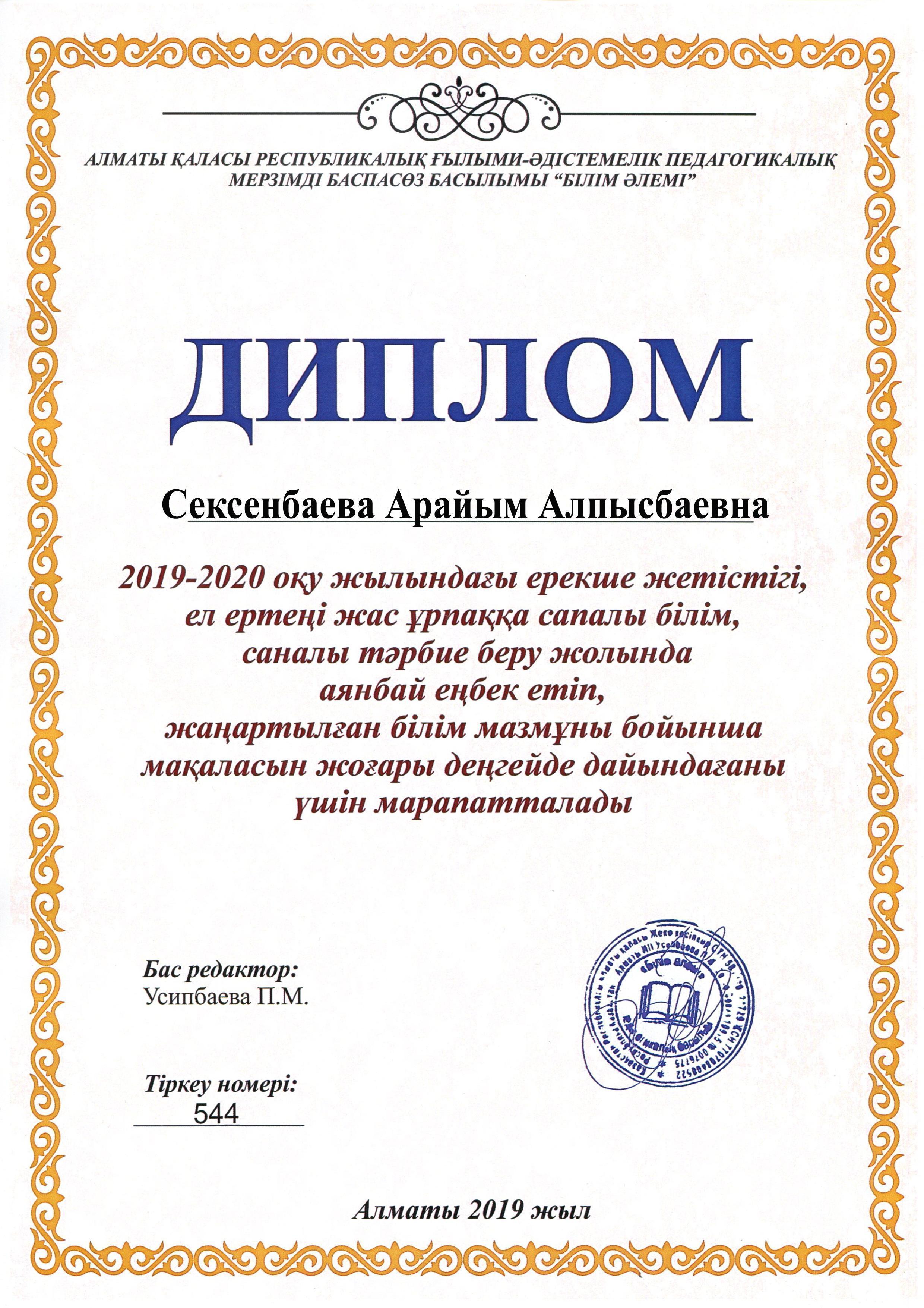 СЕРТИФИКАТ. Сексенбаева Арайлым
