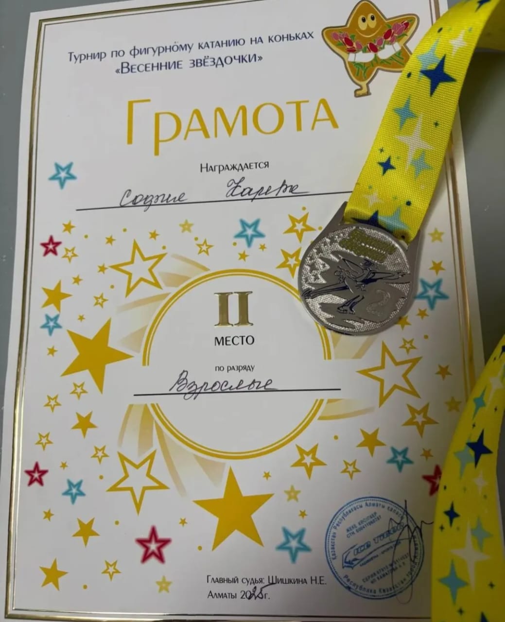 ГРАМОТА ІІ МЕСТО по фигурному катанию награждается СОФИЯ КАРАЕВА