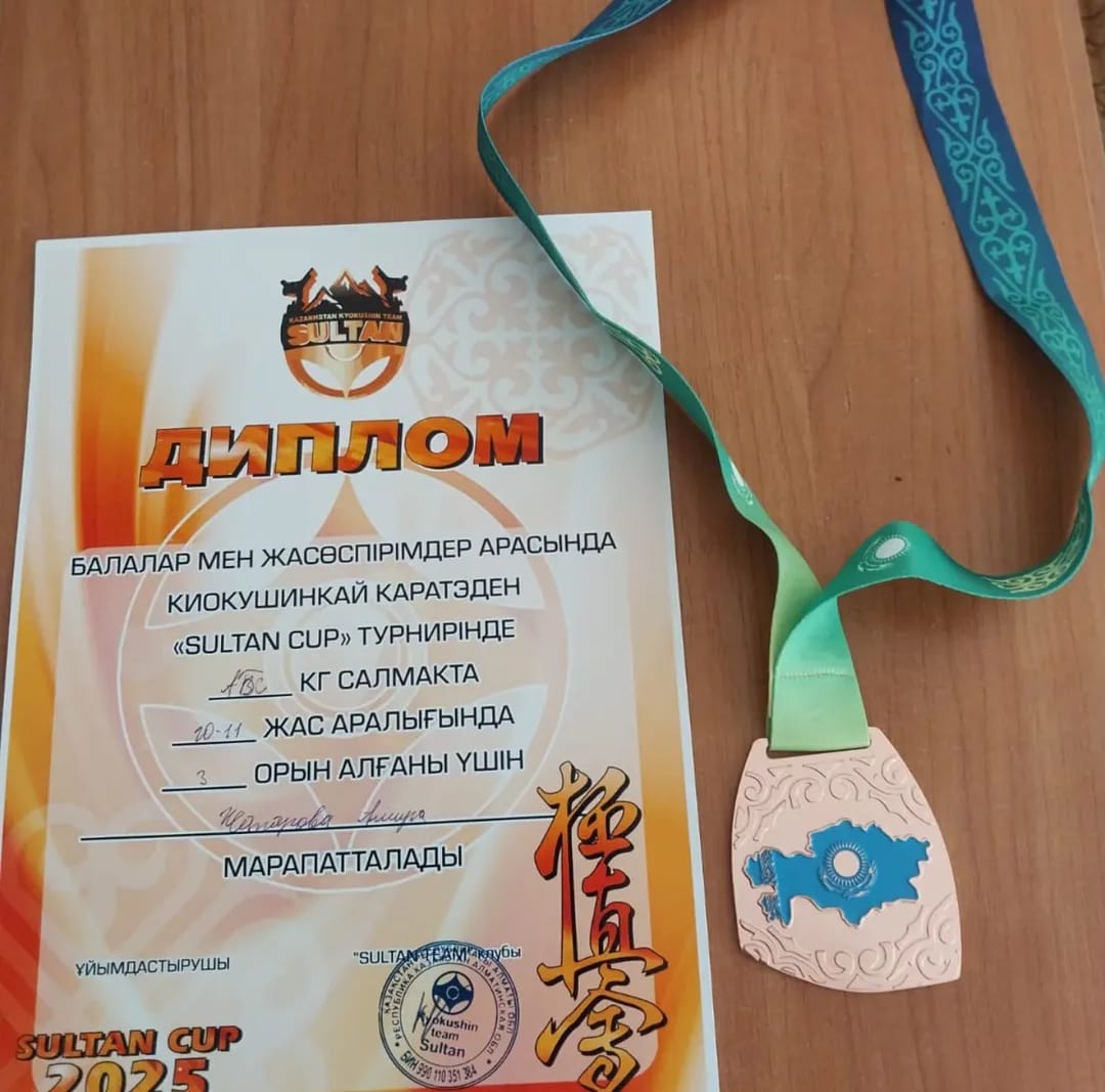 29 апрель 2025 0 1 2 3 4 5 ДИПЛОМ ЖАПАРОВА АМИНА КИОКУШИНКАЙ КАРАТЭДЕН ІІІ ОРЫН алғаны үшін марапатталады.