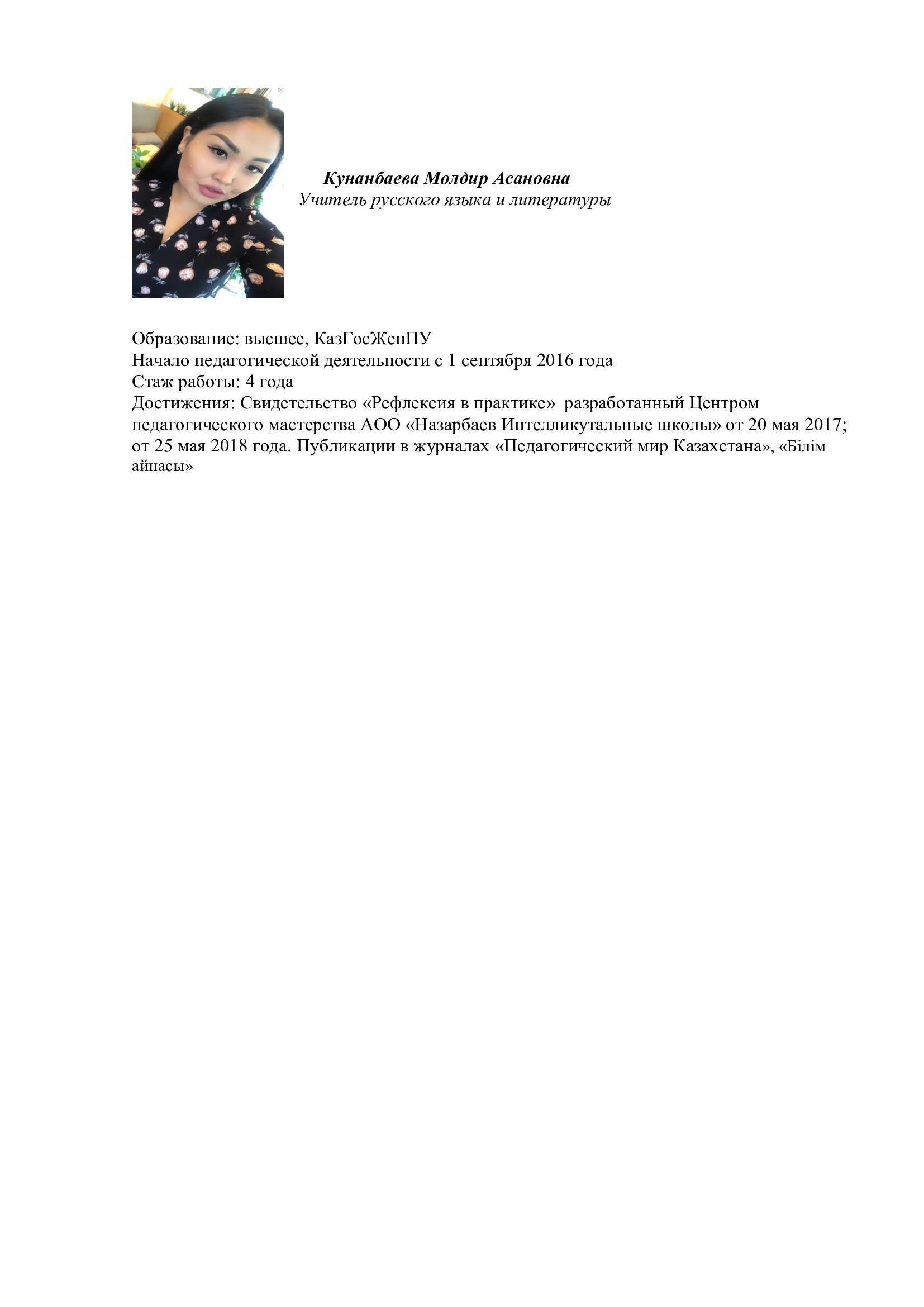 » Кунанбаева Молдир Асановна