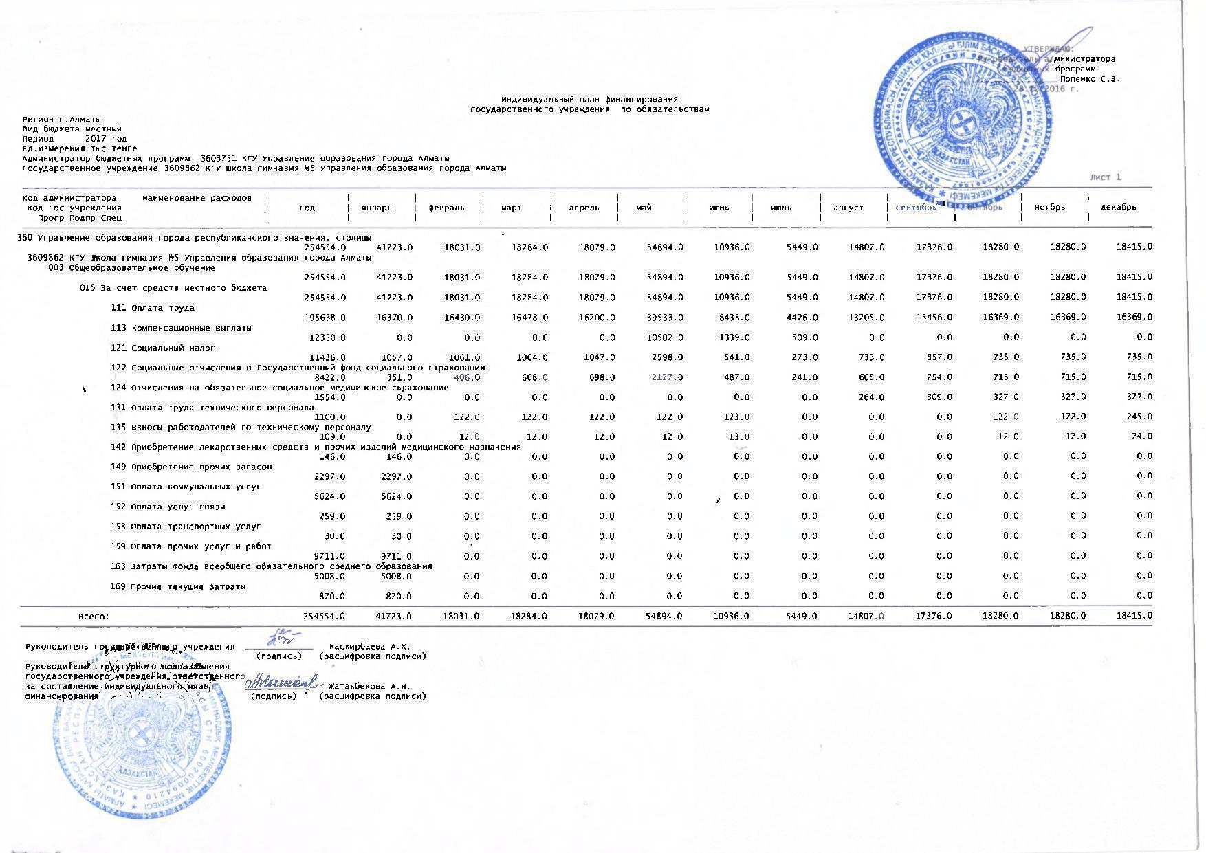 » План финасирования по обязательствам и по платежам на 2017г