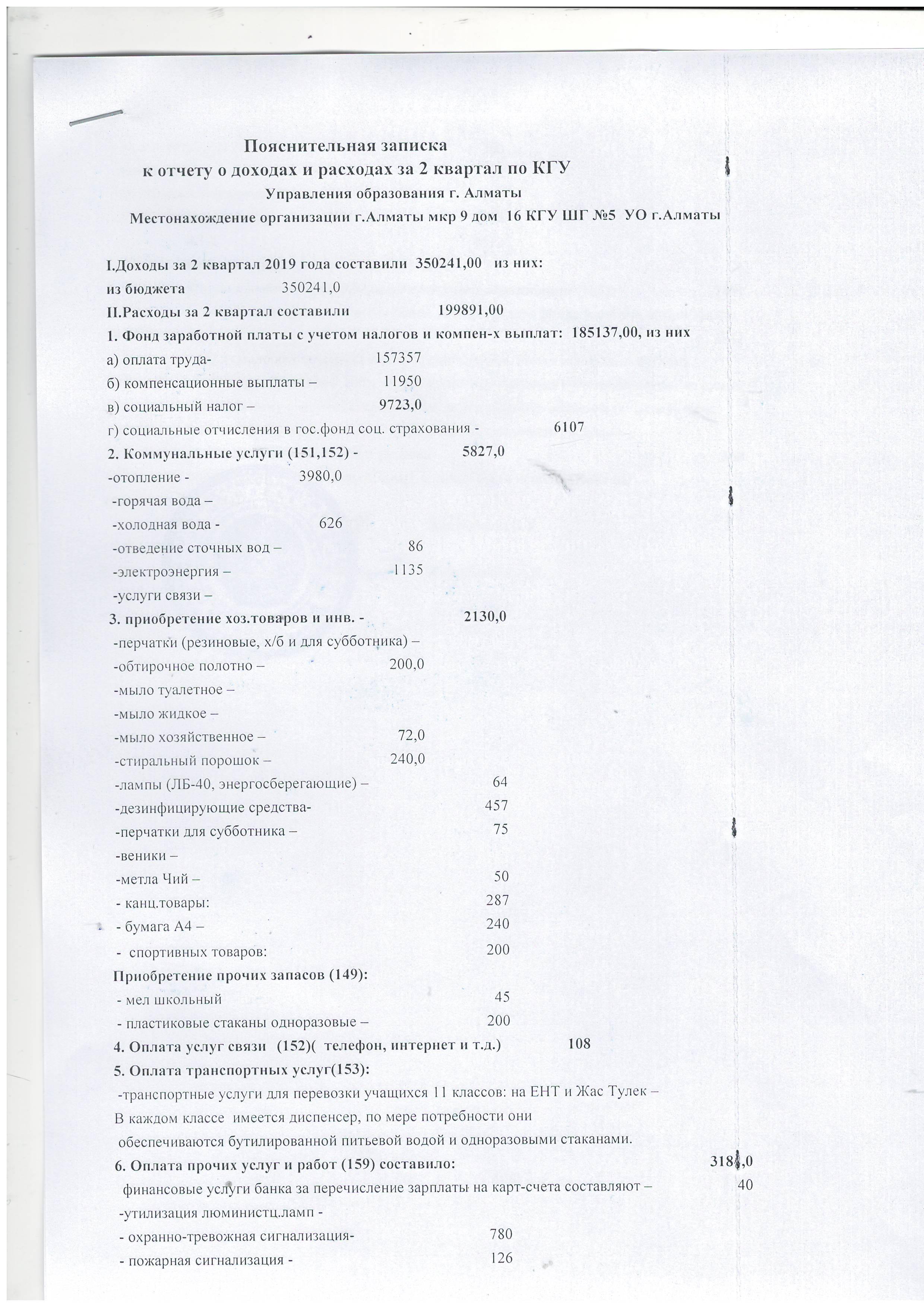 » Отчет о доходах и расходах за 2 квартал 2019 год