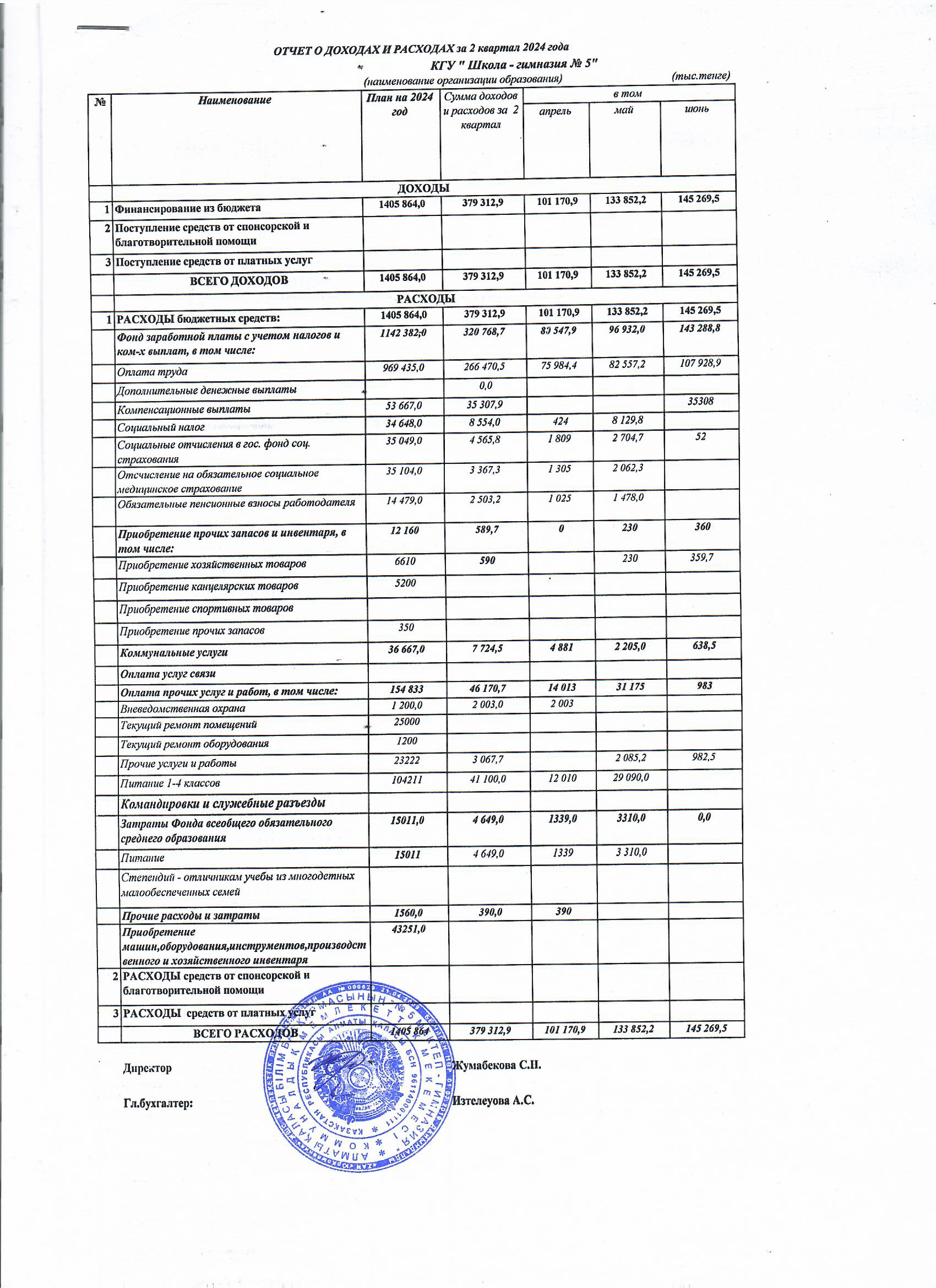 Отчет о доходах и расходах за 2 квартал 2018 г.