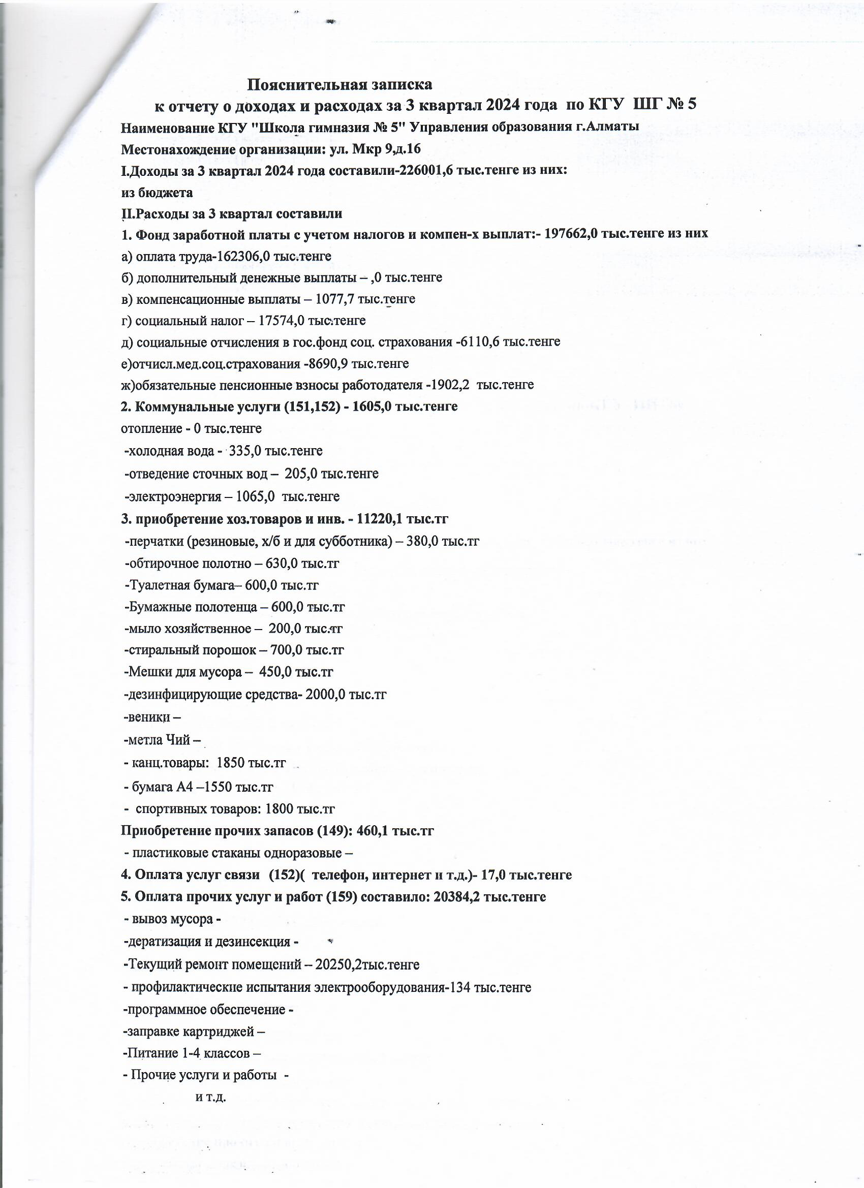 » Отчет о доходах и расходах за 3 квартал 2024 года