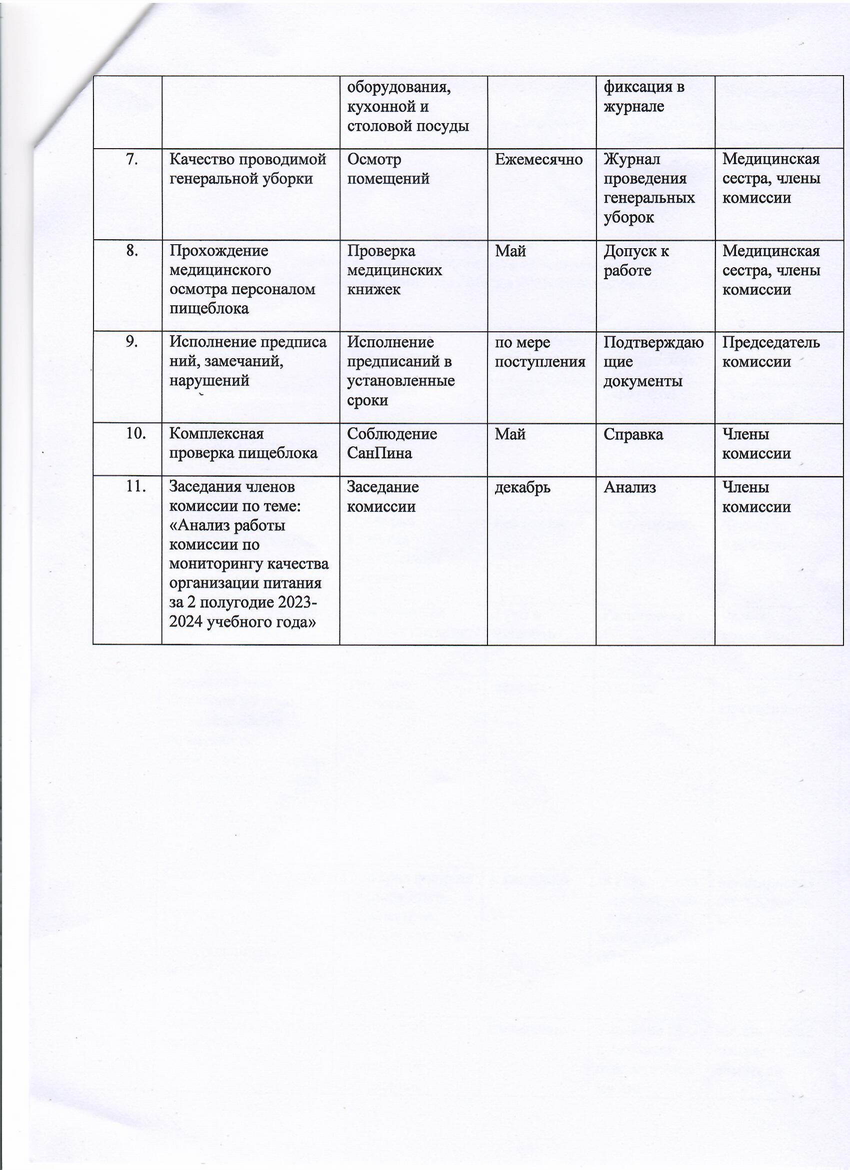 План работы комиссии по мониторингу за качеством питания на 2023-2024 год. 2023-2024 оқу жылына арналған тамақтану сапасын бақылау жөніндегі комиссиялар жұмыс жоспары.