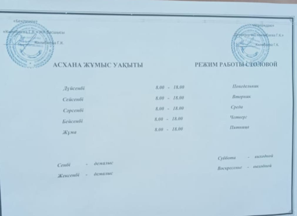 Мектеп асханасының жұмыс барысын тексеру актісі