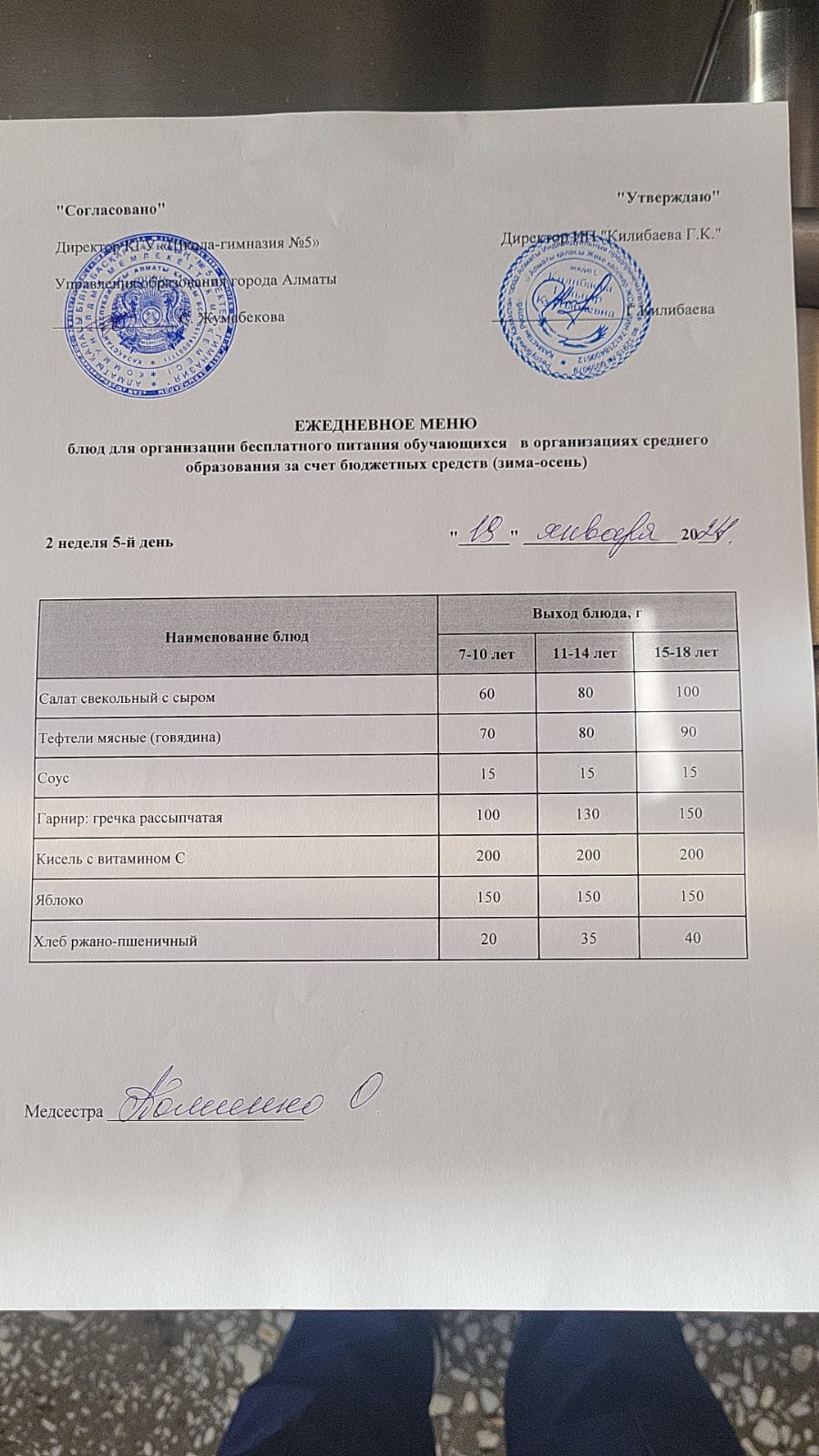 Меню блюд на 11 января 2024 года