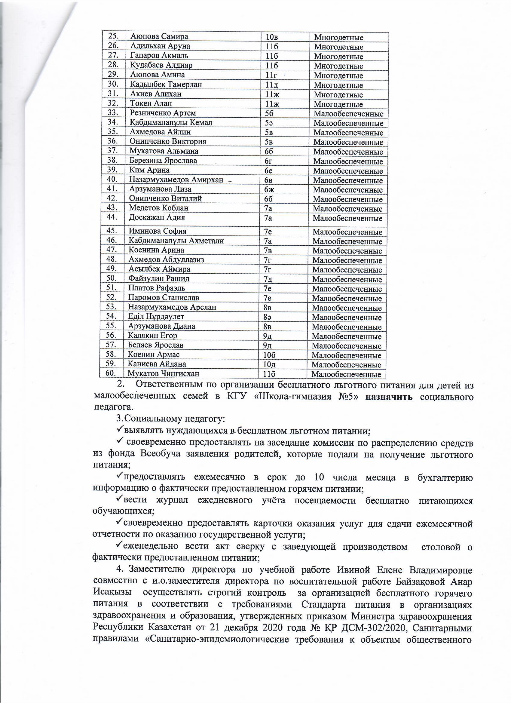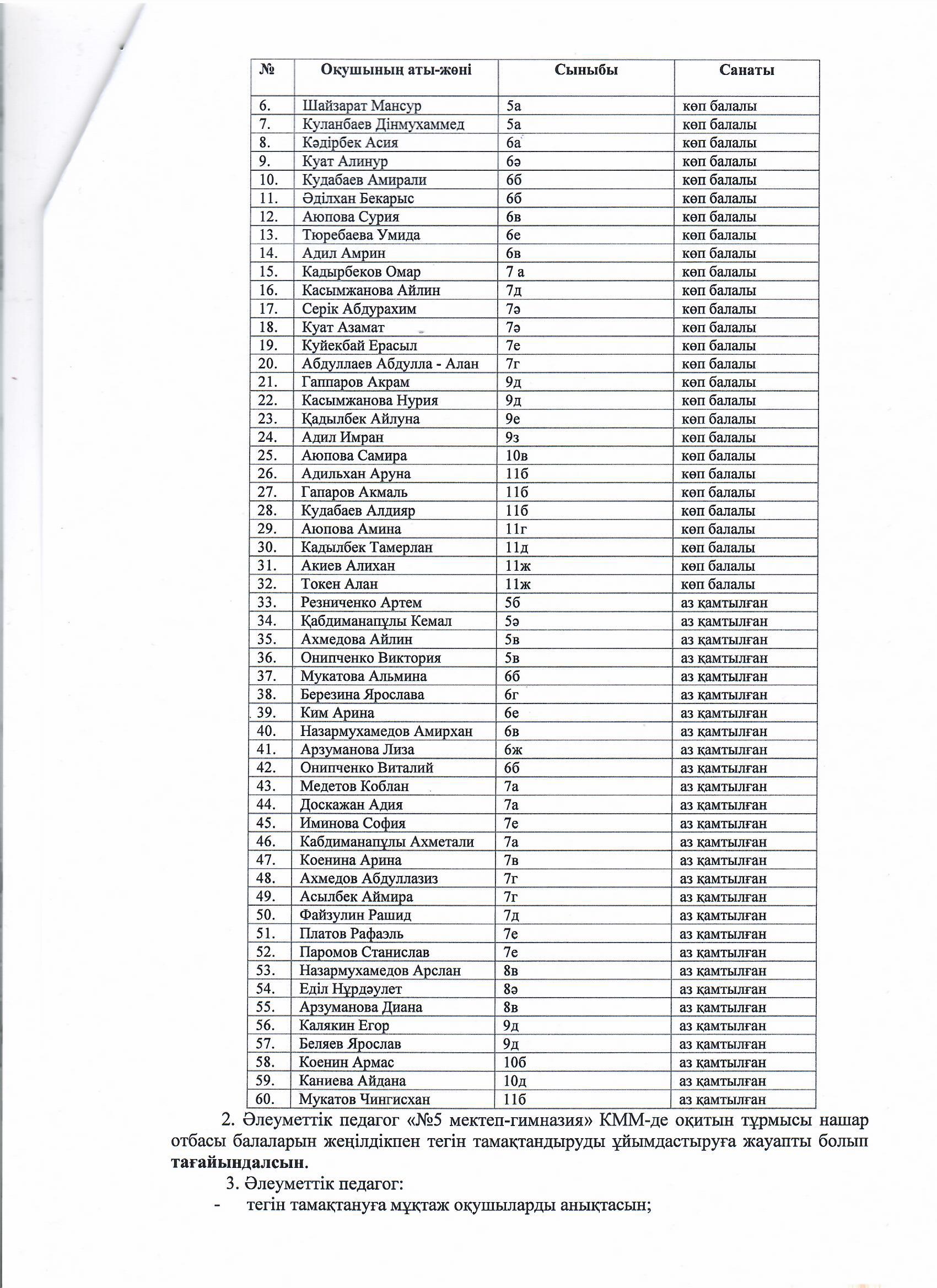 КГУ «Школа-гимназия №5»УO г.Алматы » Питание » 2024-2025 оқу жылының бірінші жартысында жетім балалар мен ата-анасының қамқорлығынсыз қалған балаларға ыстық тамақпен қамтамасыз ету. Об организации бесплатным горячим питанием для детей-сирот, оставшихся без попечения родителей в первом полугодии.