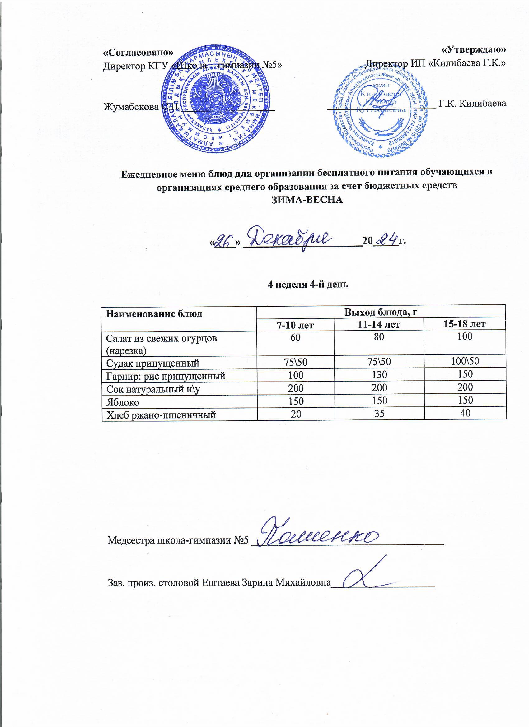 МЕНЮ Меню блюд на 29 декабря 2022 года