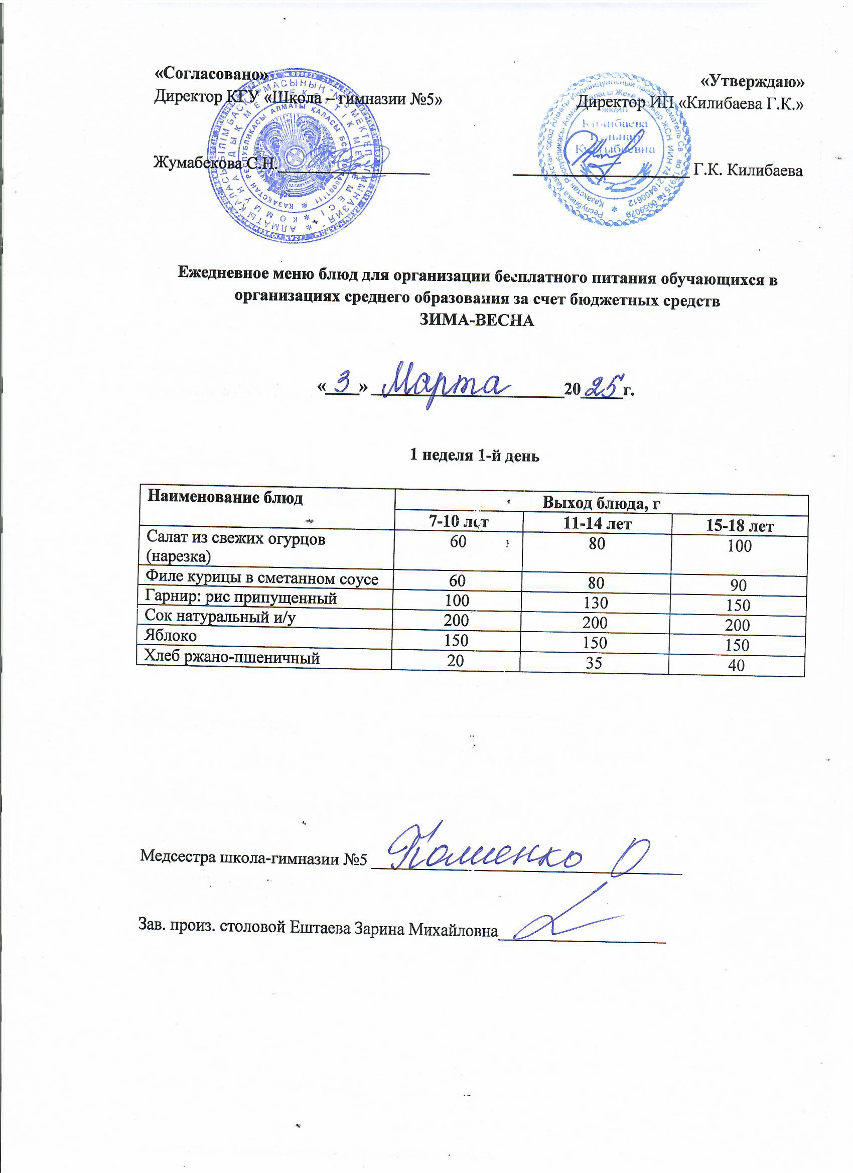 Меню блюд на 03 марта 2025 года