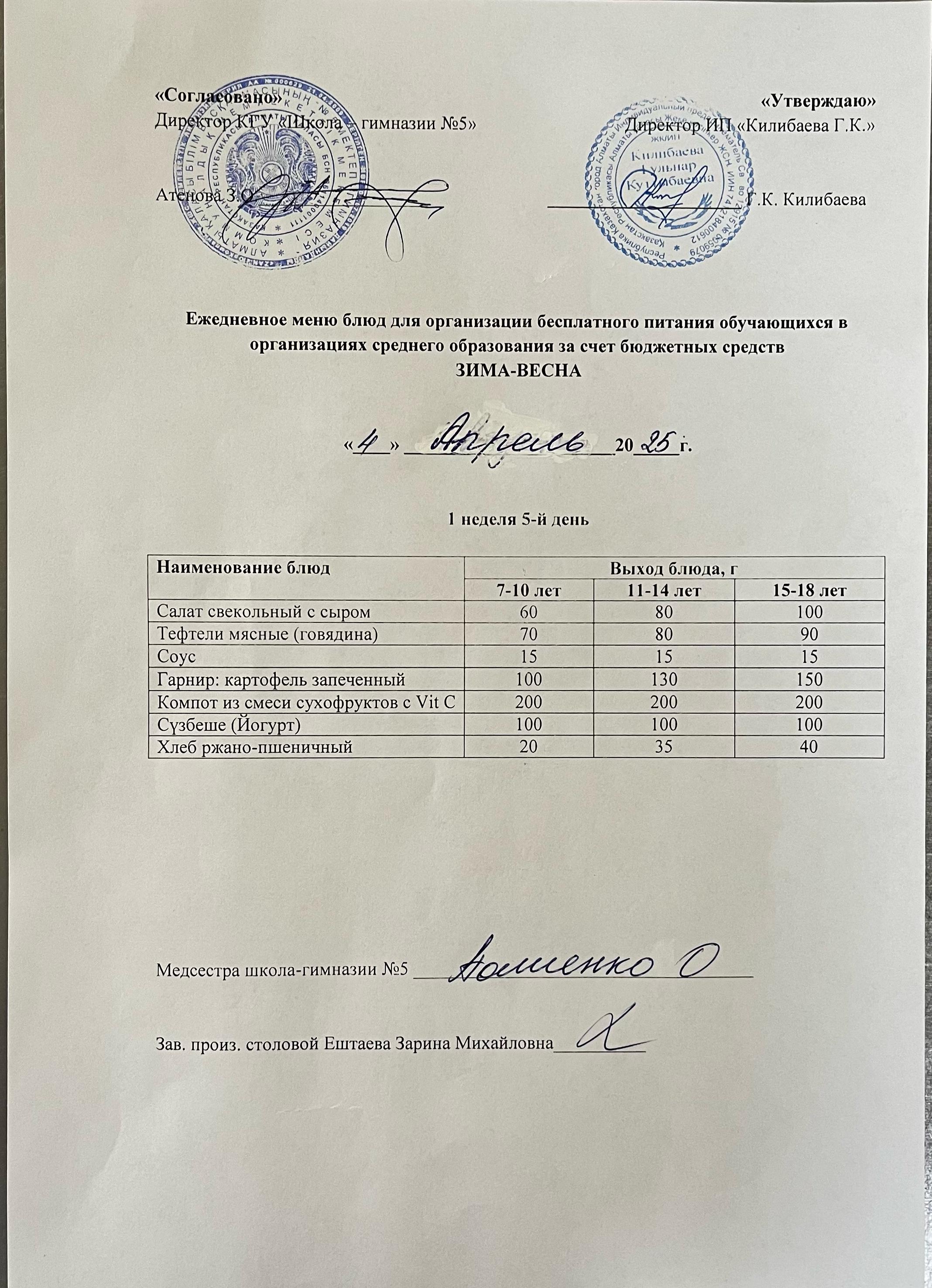 » Меню блюд на 04 апреля 2025 года