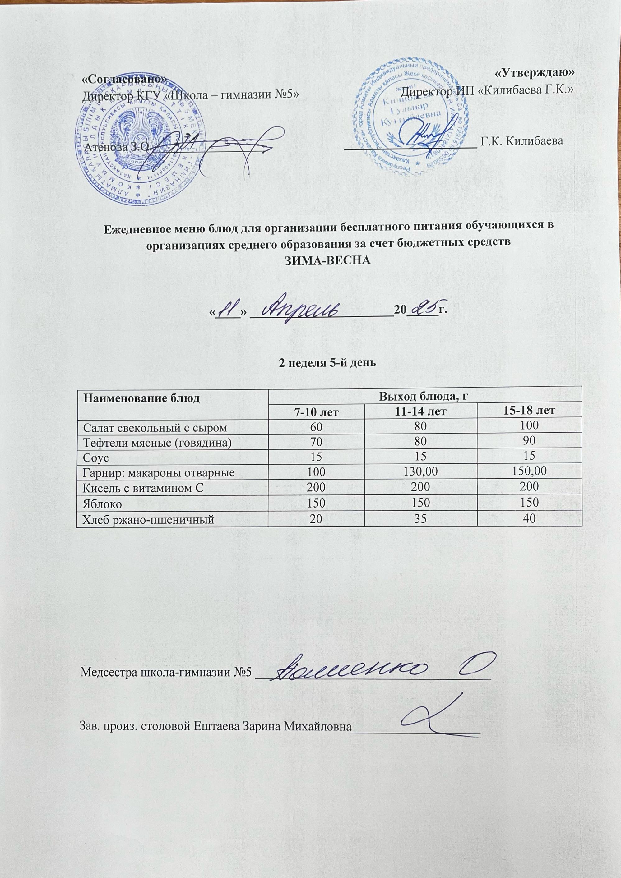 » Меню блюд на 11 апреля 2025 года