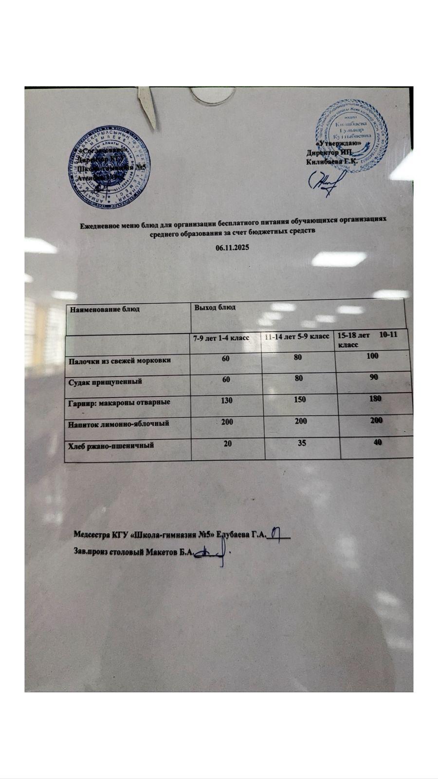 » Меню блюд на 6 ноября 2025 года