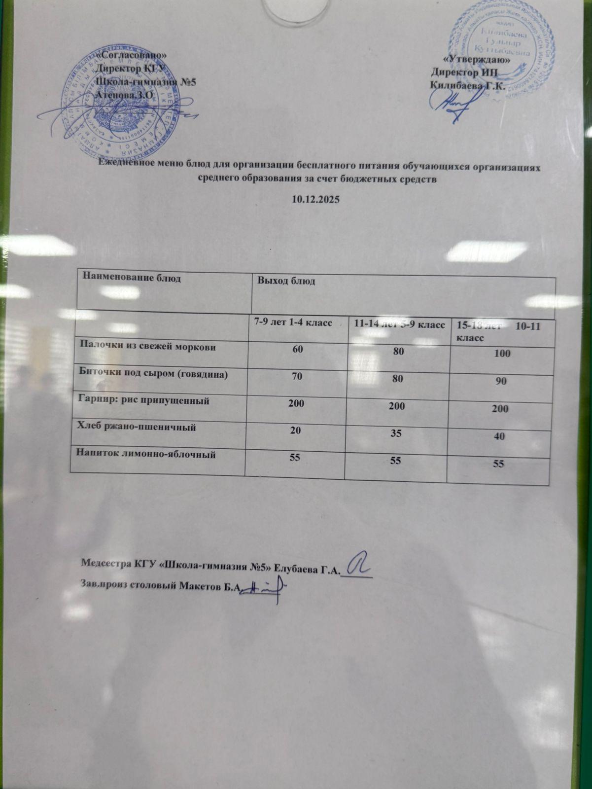 Меню на 5 декабря 2025 года