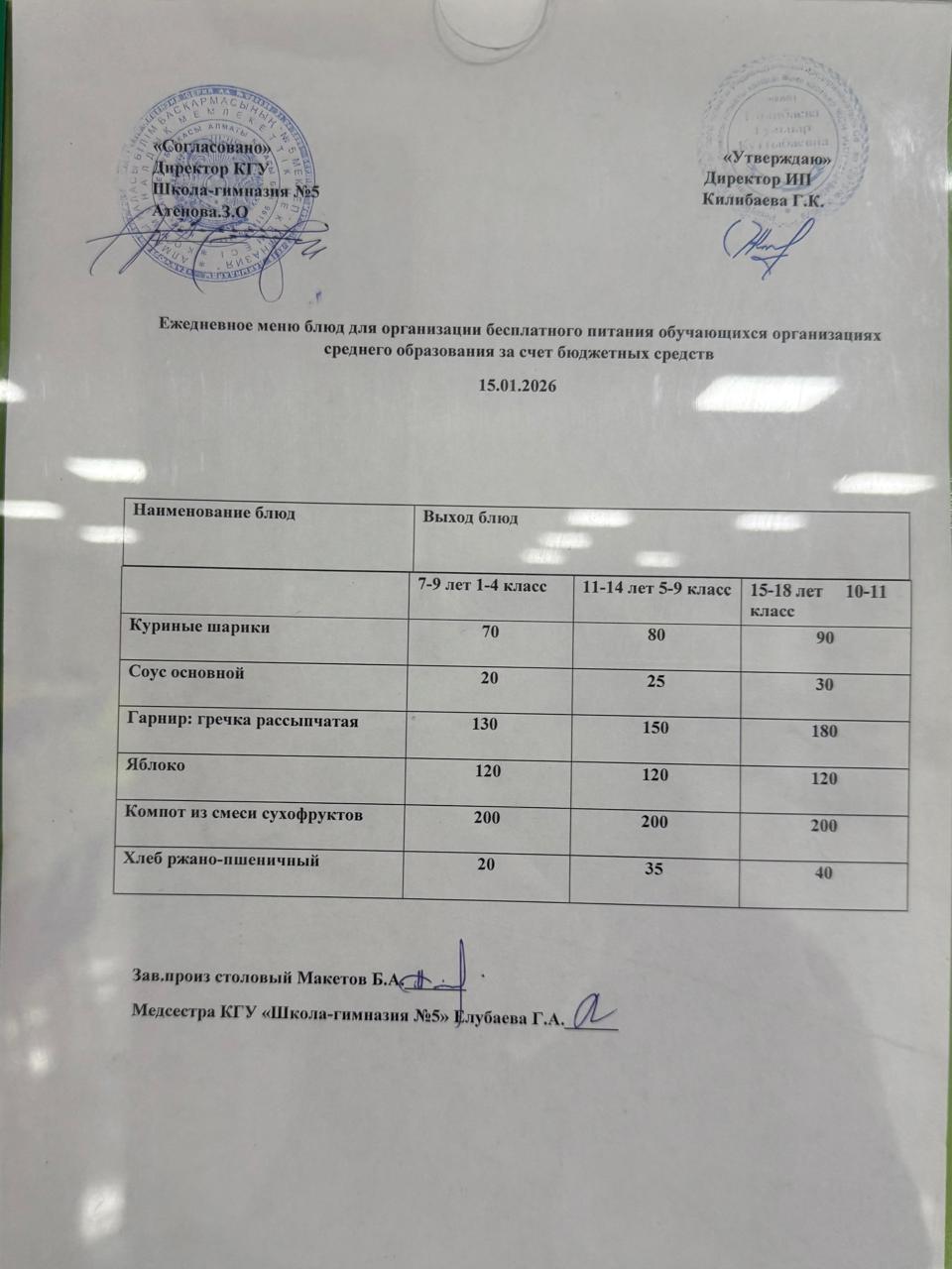 » Меню на 15 января 2026 года