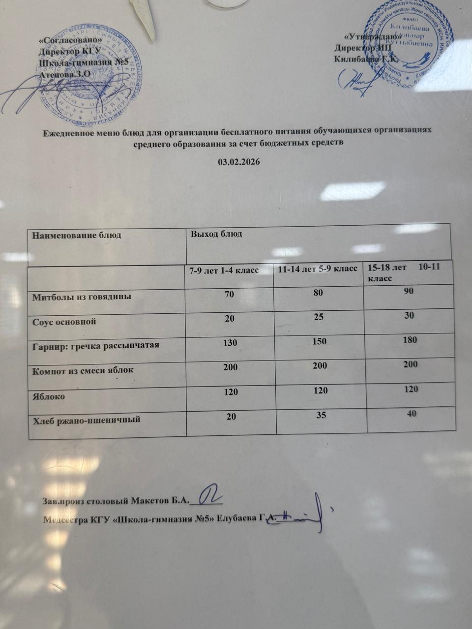 Меню на 03 февраля 2026 года
