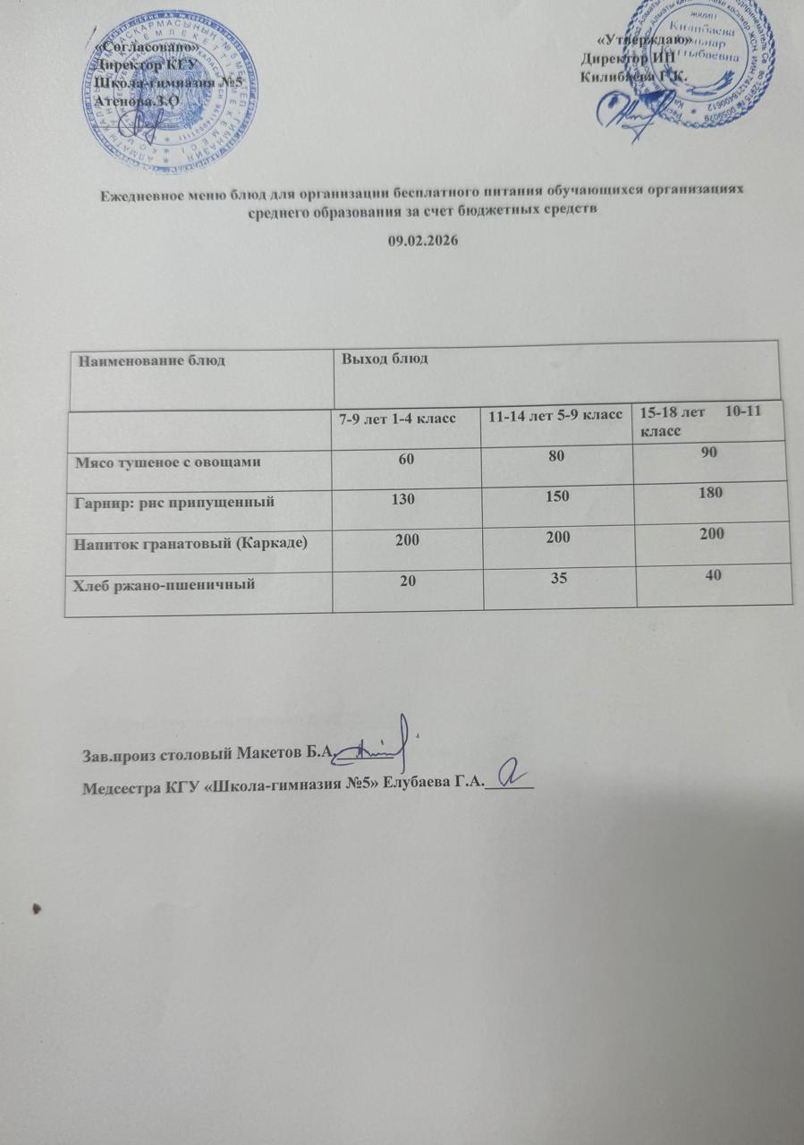 Меню на 9 февраля 2026 года