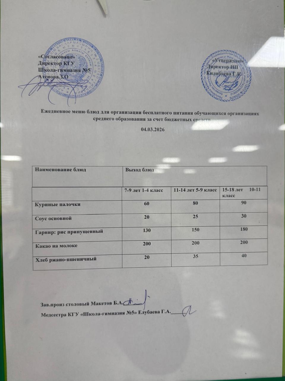 Меню на 04 марта 2026 года