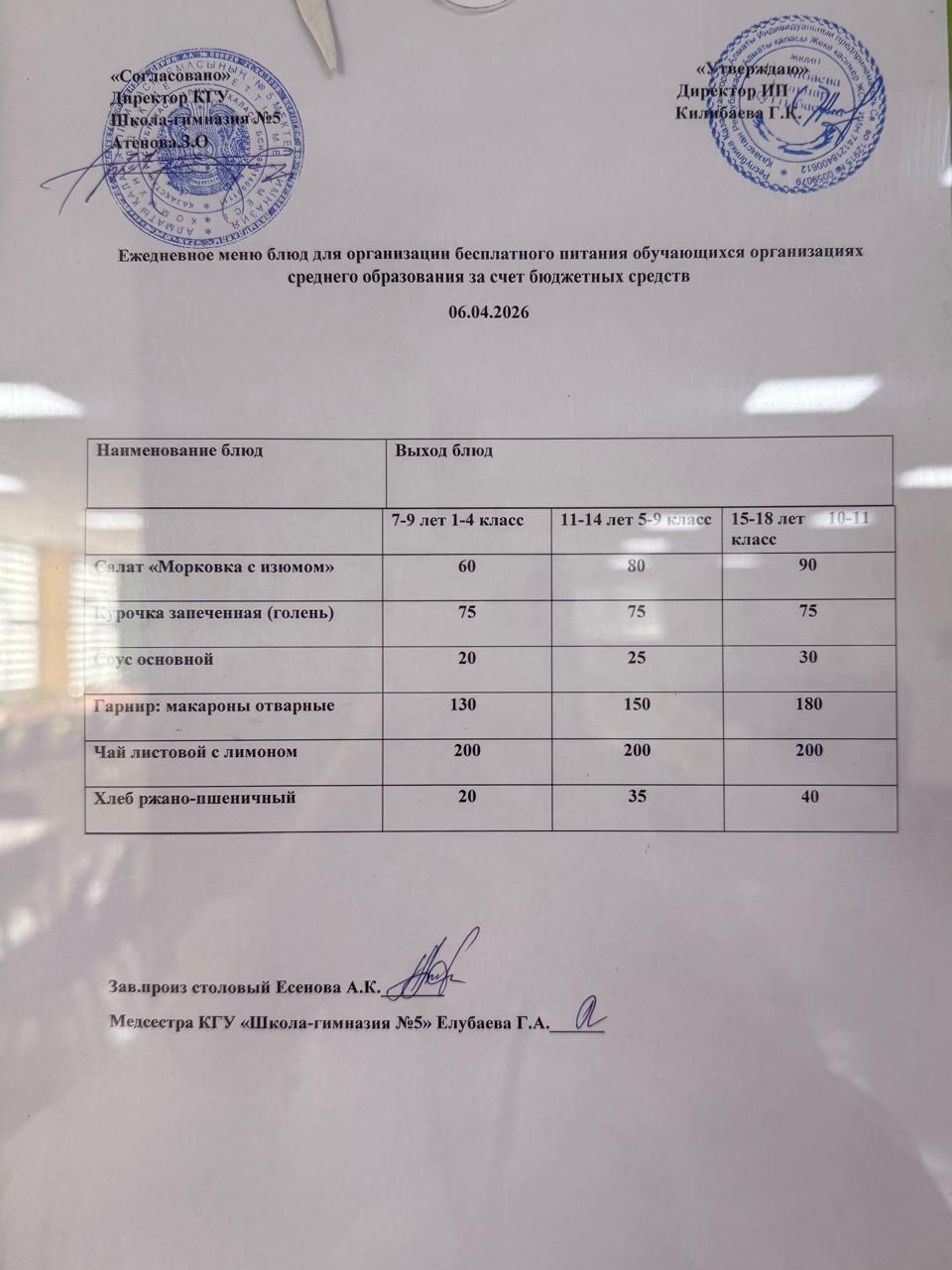 Меню на 06 апреля 2026 года