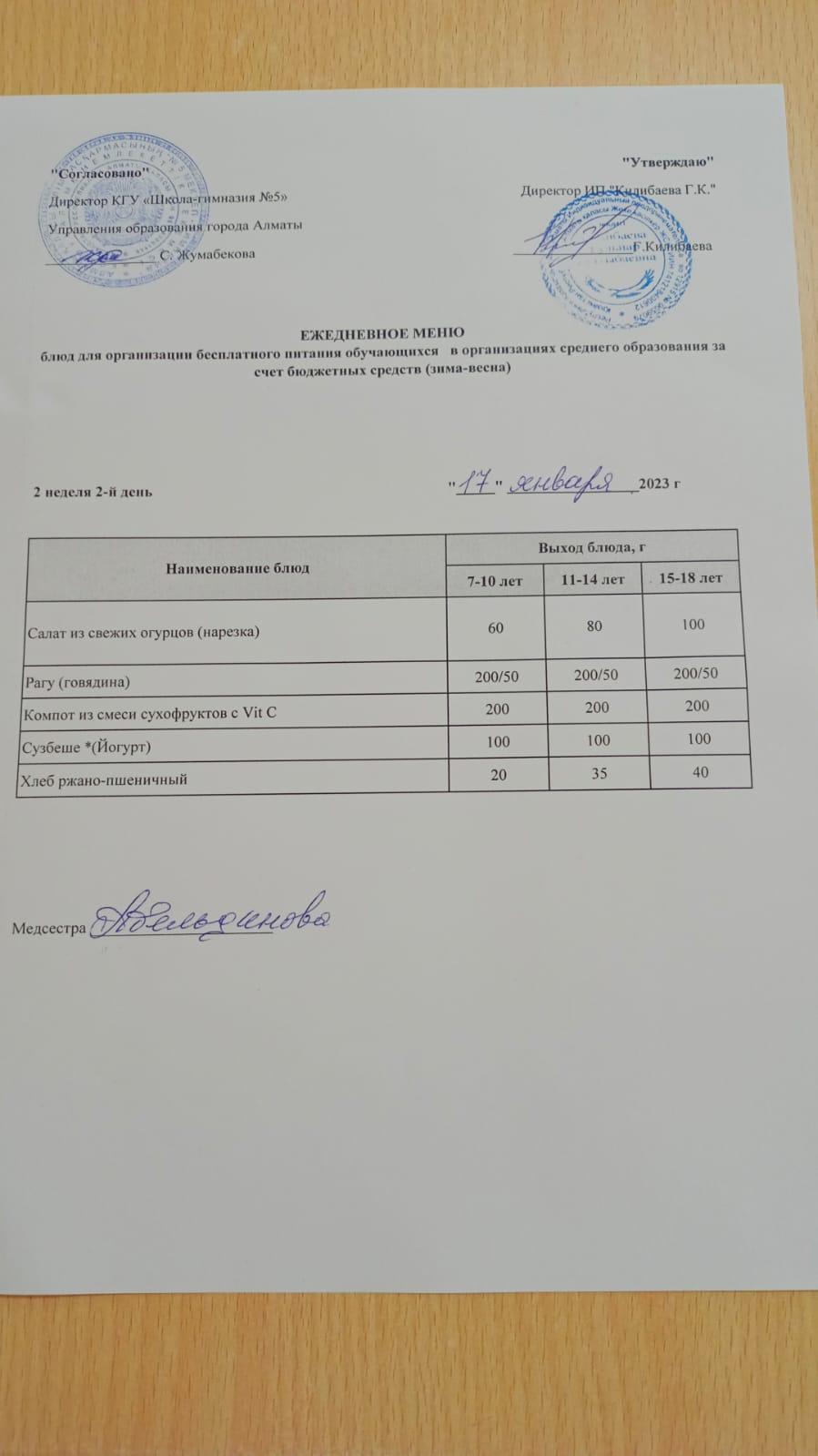 » МЕНЮ Меню блюд на 17 января 2023 года