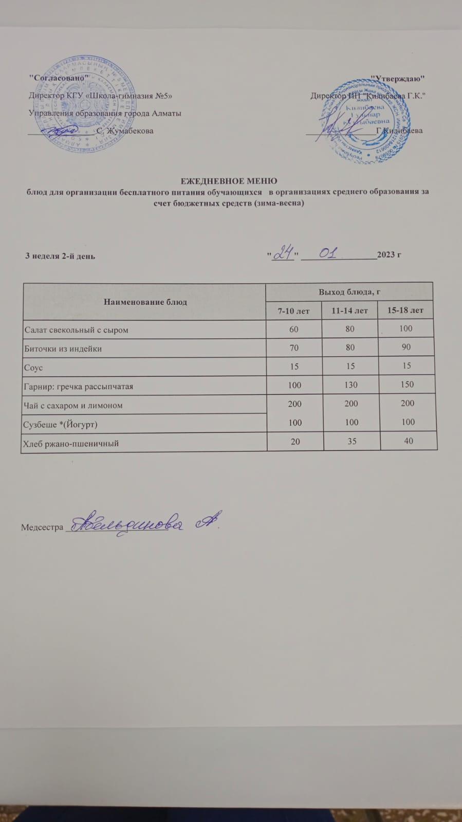 » МЕНЮ Меню блюд на 24 января 2023 года