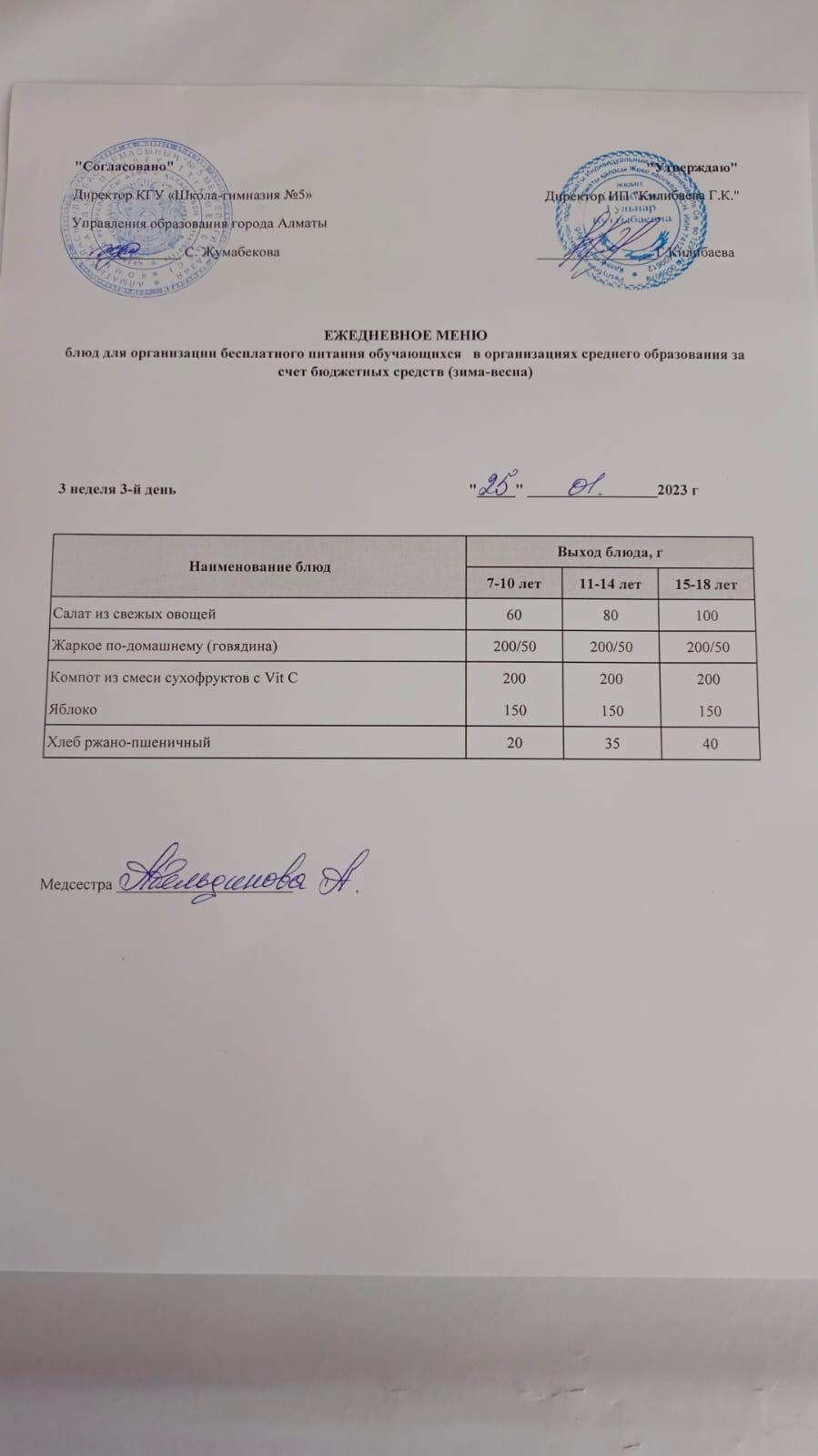 » МЕНЮ Меню блюд на 25 января 2023 года